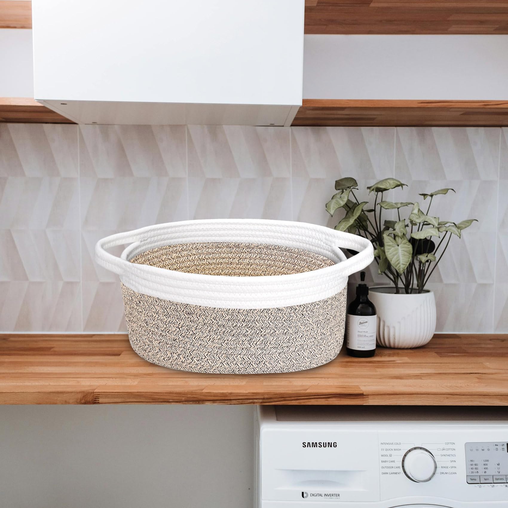 100% cotton material, small rope basket, natural, chemical-free, skin-friendly, woven basket safe for baby and pets, scratch-free to floors or walls