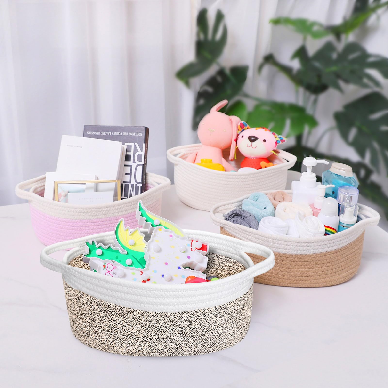 Small baskets for organizing, keep spa essential, fruits, remote control, towel, diaper, blanket, toy, nursery necessaries, make-ups organized in order. Even can be used as dog cat basket