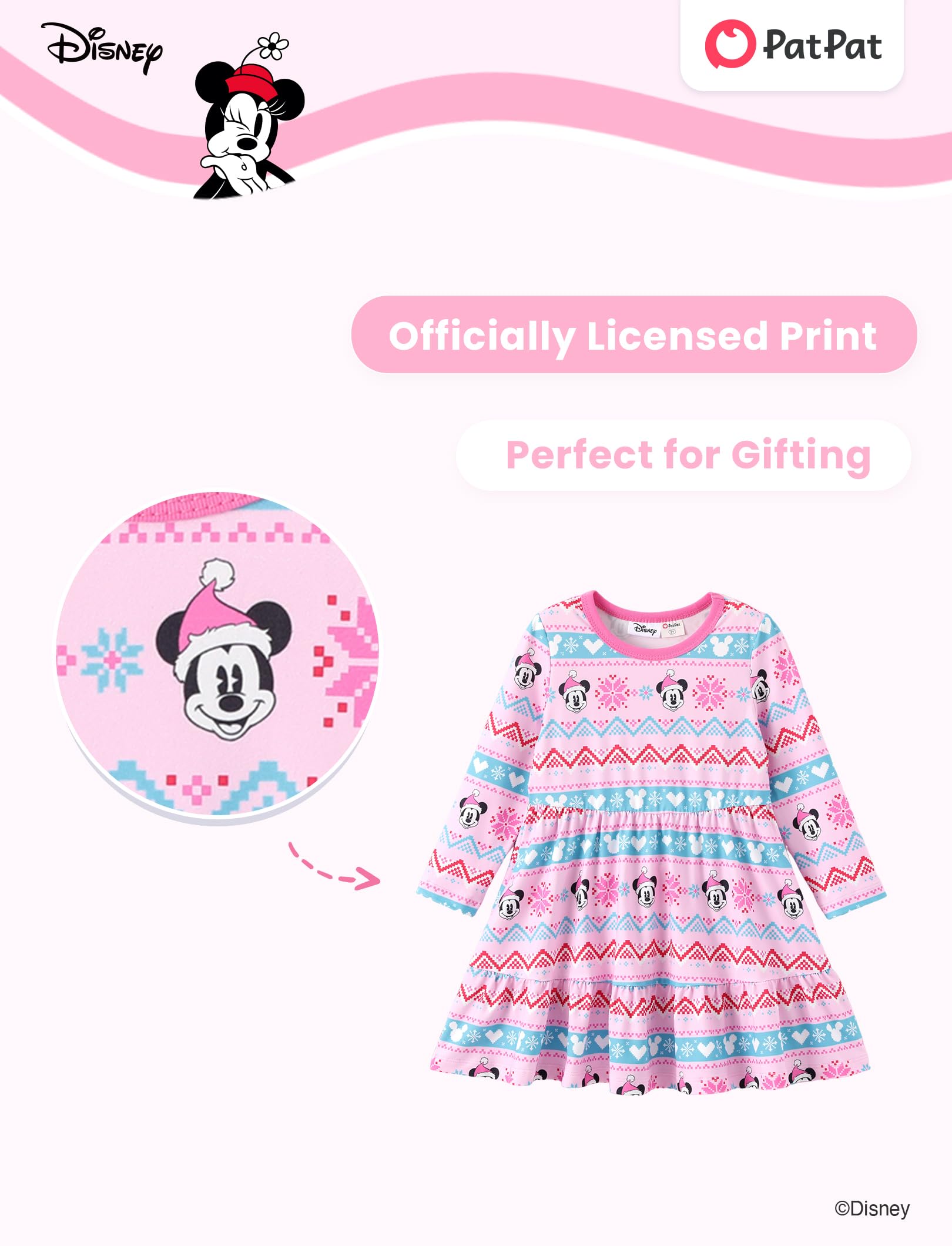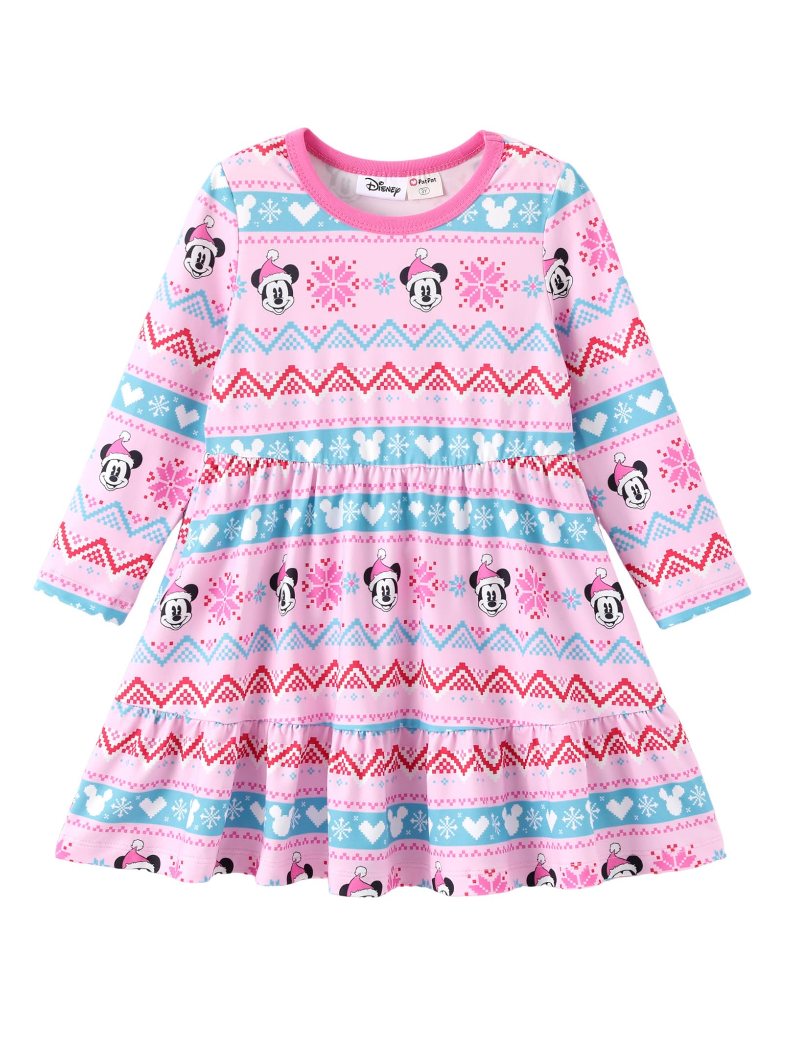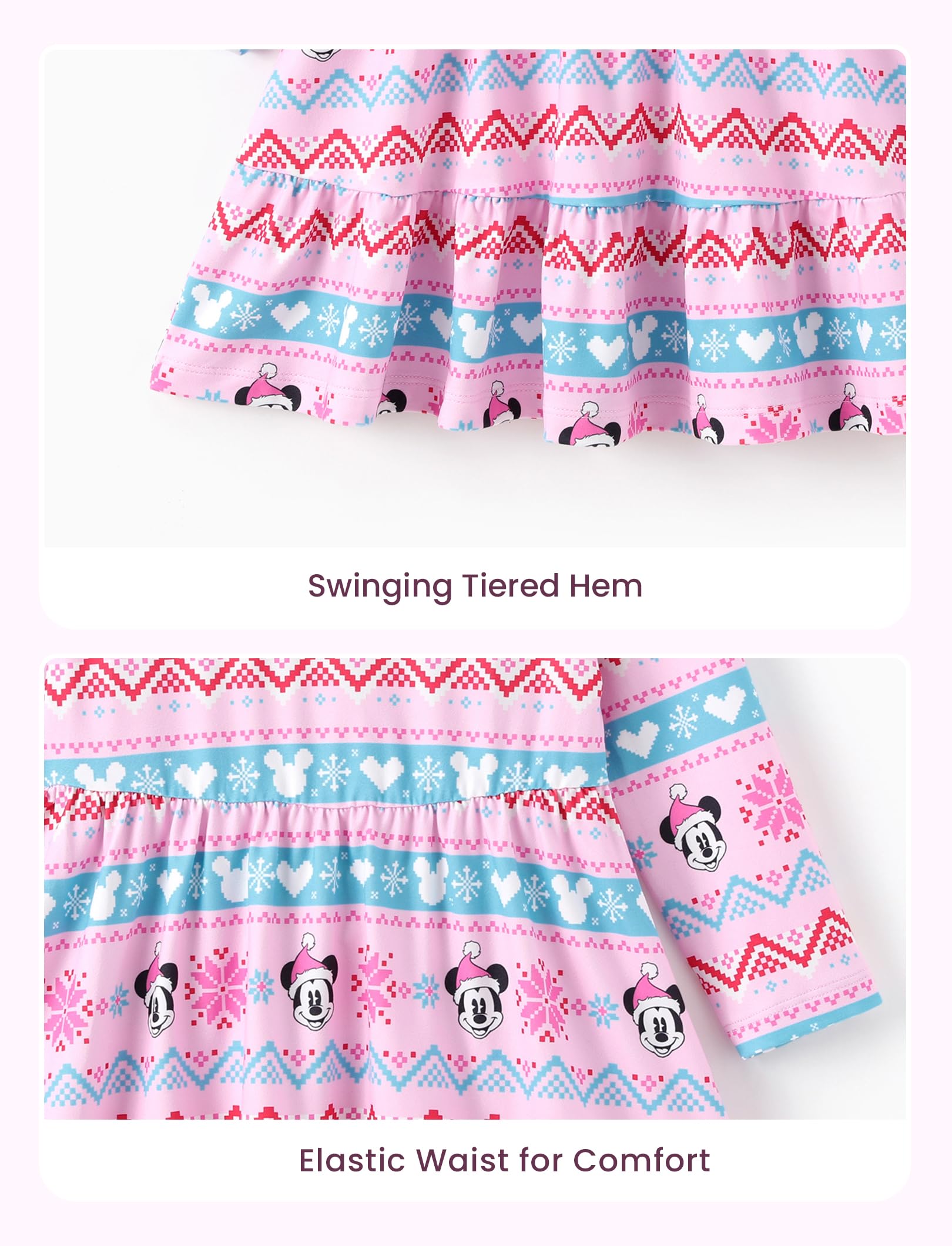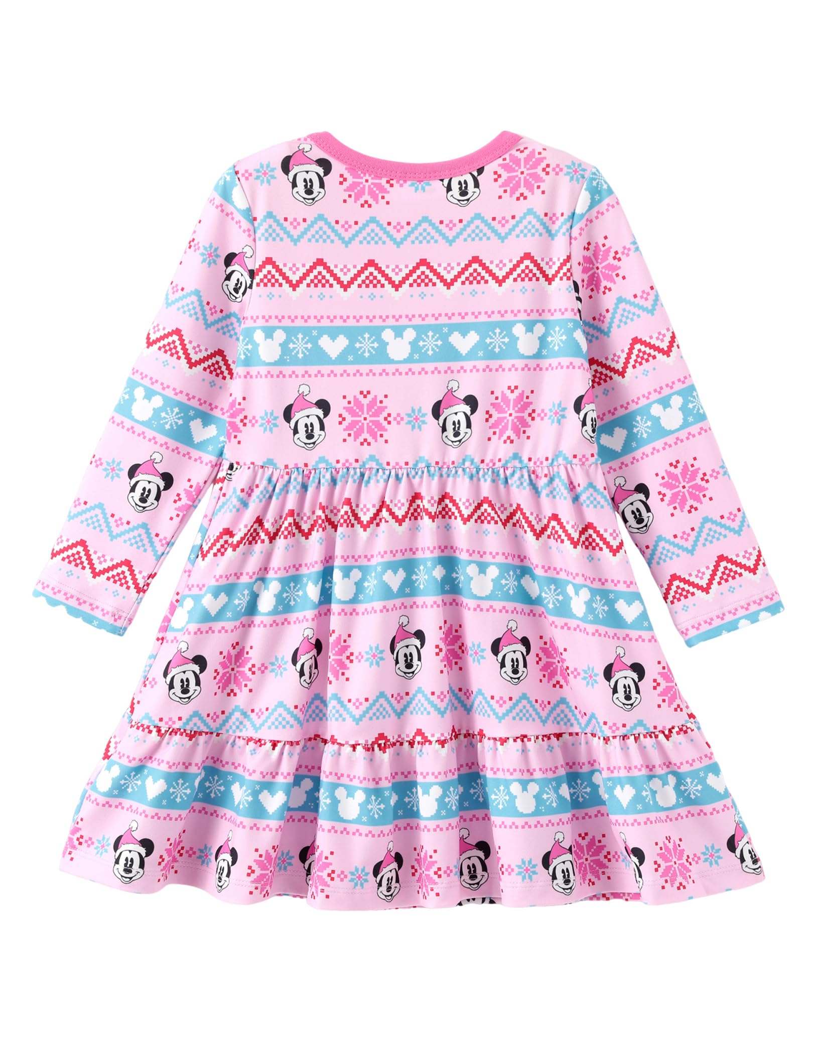 Charming & Cozy Design: Keep your little one stylish and comfy in this Disney Minnie Mouse dress! Featuring Minnie faces and festive stripes, this dress offers fun design and cozy comfort. The soft pink background with blue and red accents and frilly skirt add cheer. Perfect for kids aged 2-6, this long-sleeve dress is ideal for outings, school, or Disney events, combining style and comfort