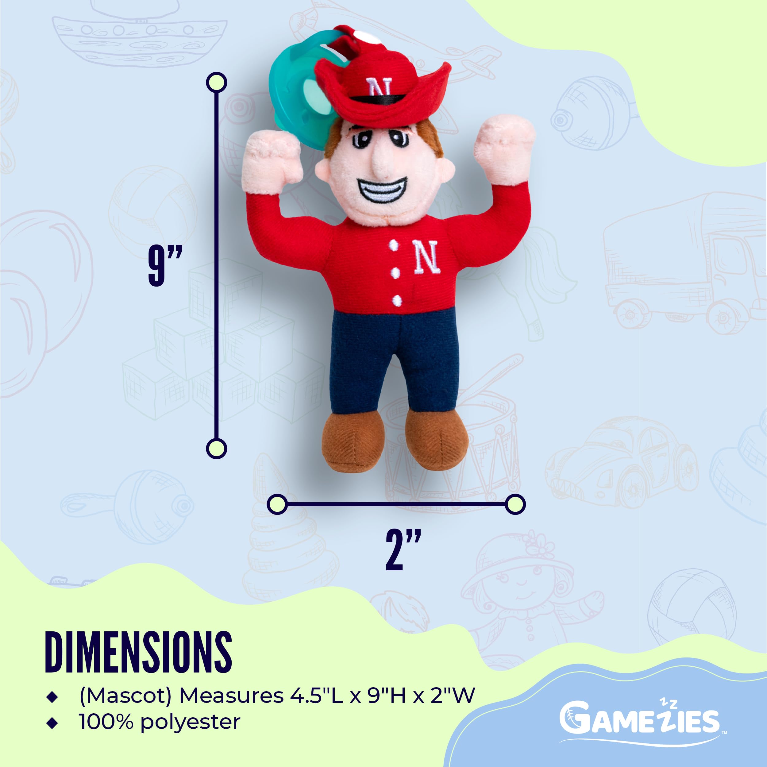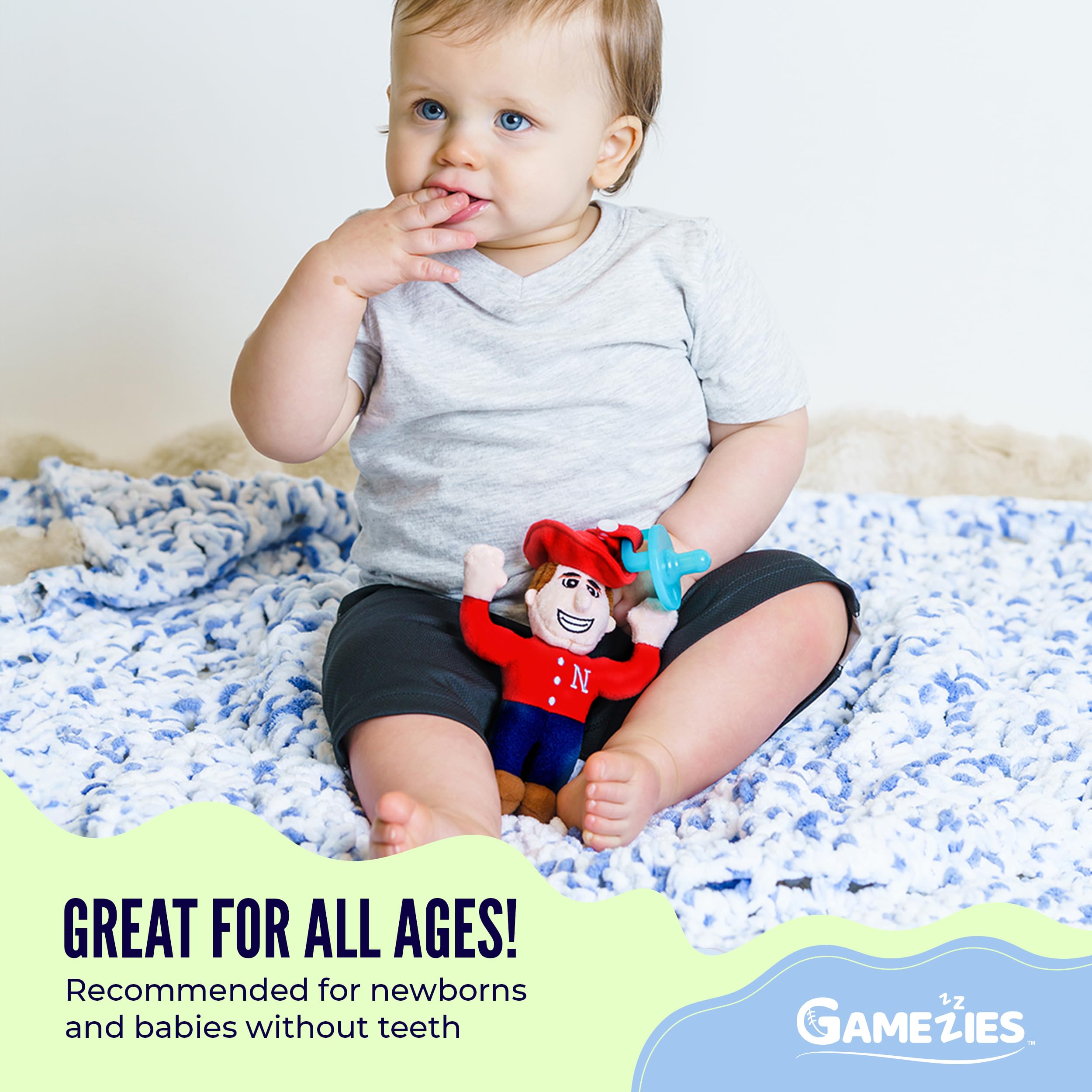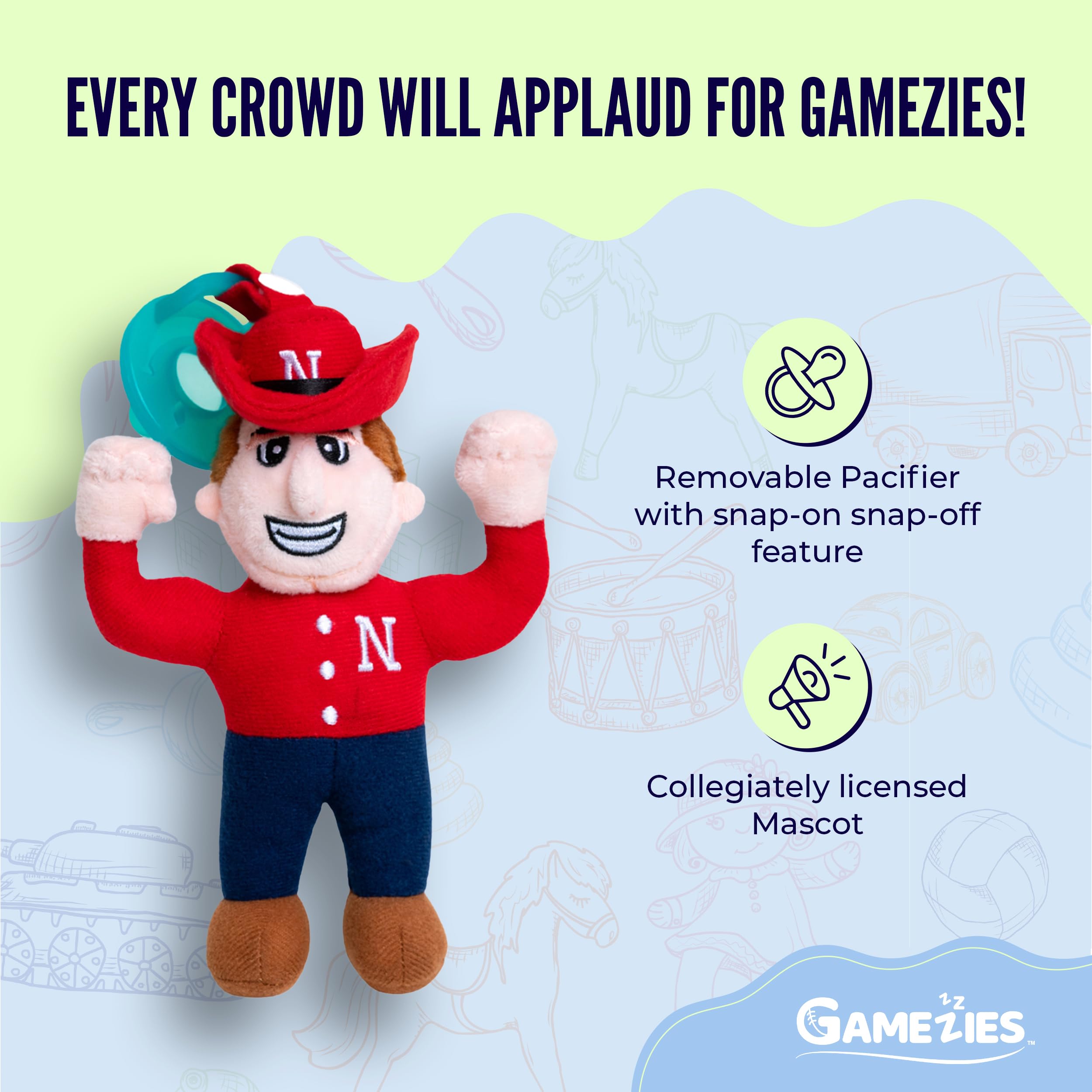 GO BIG RED SPIRIT: Celebrate Cornhusker pride with our Gamezies Herbie Husker Pacifier! Featuring a soft, detailed plush and a detachable pacifier, this cuddly mascot captures the bold energy of Nebraska fans everywhere—perfect for the littlest Husker in your family.