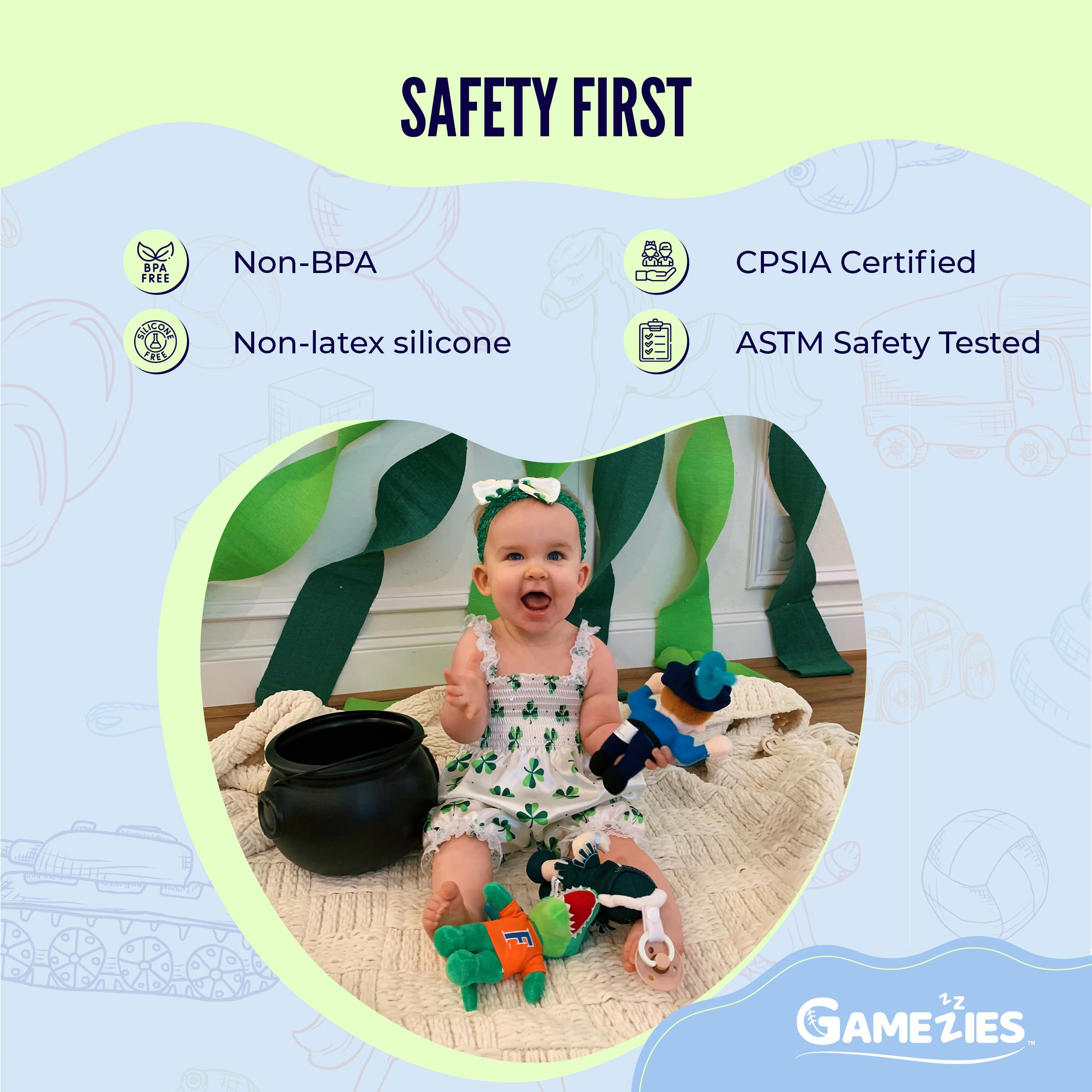 EASY TO CLEAN & BUILT TO LAST: Because parent life is busy, every Gamezies plush pacifier is made for effortless care. The plush toy can be machine-washed (cold, gentle cycle, linen bag recommended), while the pacifier detaches for quick handwashing with warm water and mild soap. Durability tested for daily use at home, in the car, or on the go.