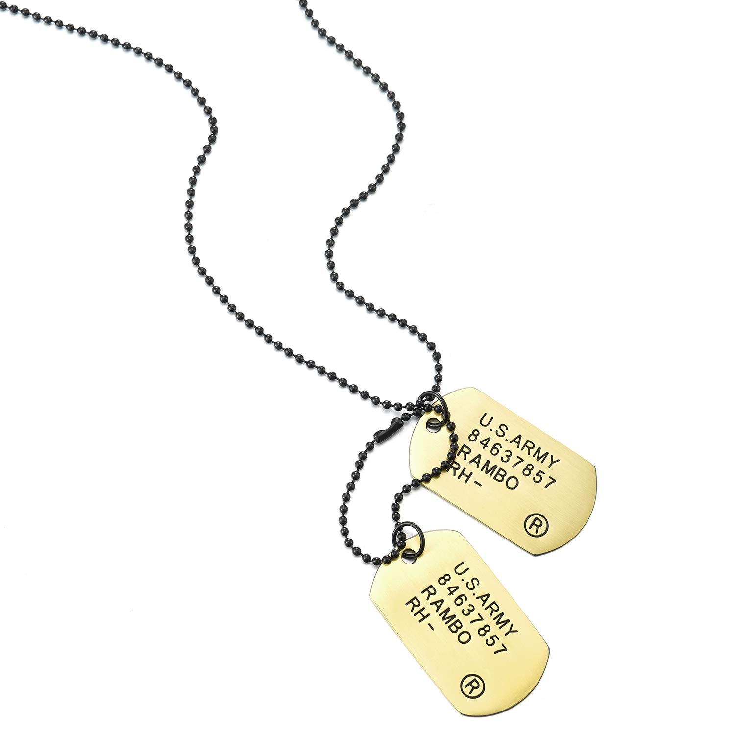 Classic Bronze Two-Pieces Mens Military Army Dog Tag Pendant Necklace, 28 inches Ball Chain