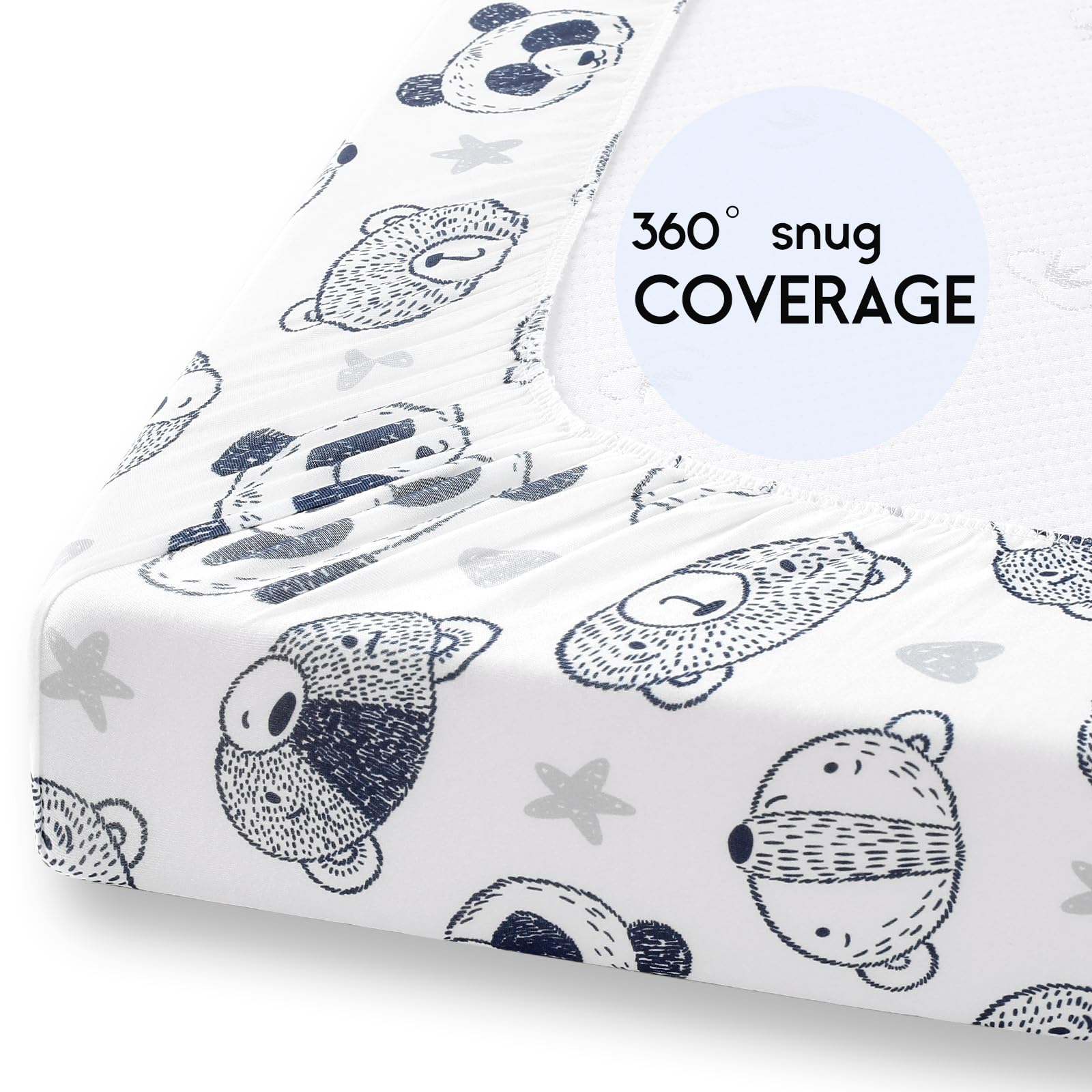 PERFECT FIT: Measured 38”X 26”, our mini crib sheets for playard can snug fit most pack n play mattresses, portable play pens, and mini crib mattresses. 5'' deep pocket provides a safe and secure 360 degree coverage and protection for your luxury mattress.