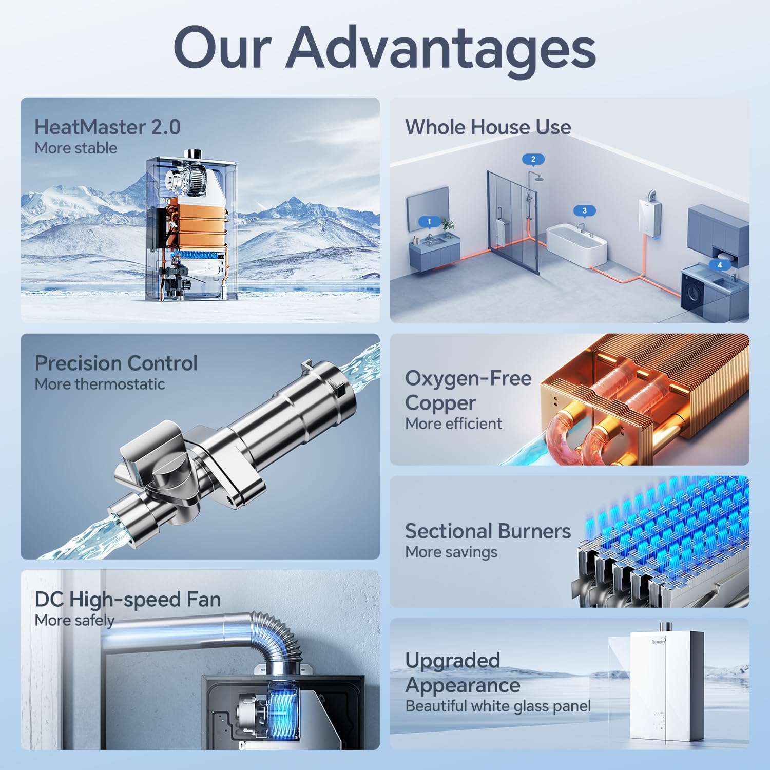 ใ๐ฃ๐ฟ๐ฒ๐ฐ๐ถ๐๐ฒ ๐ง๐ฒ๐บ๐ฝ๐ฒ๐ฟ๐ฎ๐๐๐ฟ๐ฒ ๐๐ผ๐ป๐๐ฟ๐ผ๐นใAdjust settings from 95ยฐF to 149ยฐF with zero fluctuations. Raneinโs upgraded system eliminates hot/cold spikes, while 4 auto-adaptive seasonal modes ensure consistent comfort for showers and kitchen use. Experience perfected on demand water heater comfort.