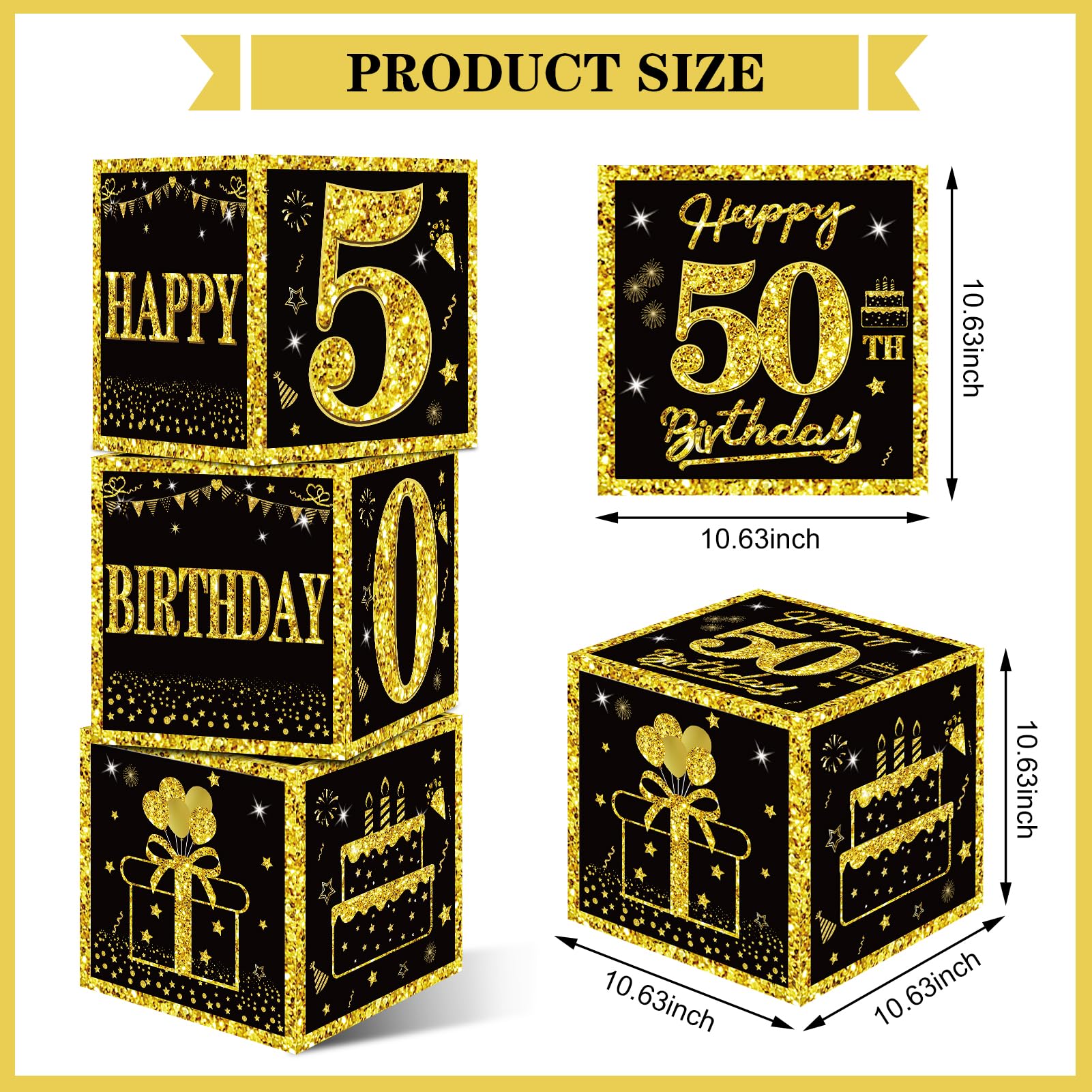 [You Will Receive] -3pcs black gold 50th birthday balloon boxes decorations, the size of each box is 10.62×10.62×10.62inch. This set of great 50th birthday party display decorations. (Note: This set of decorations does not include balloons).
