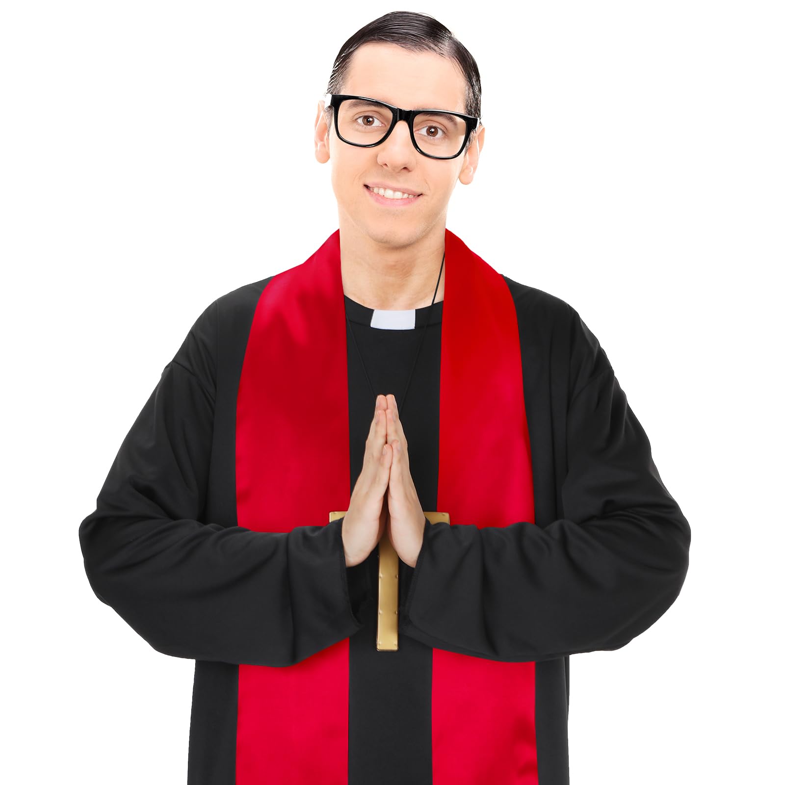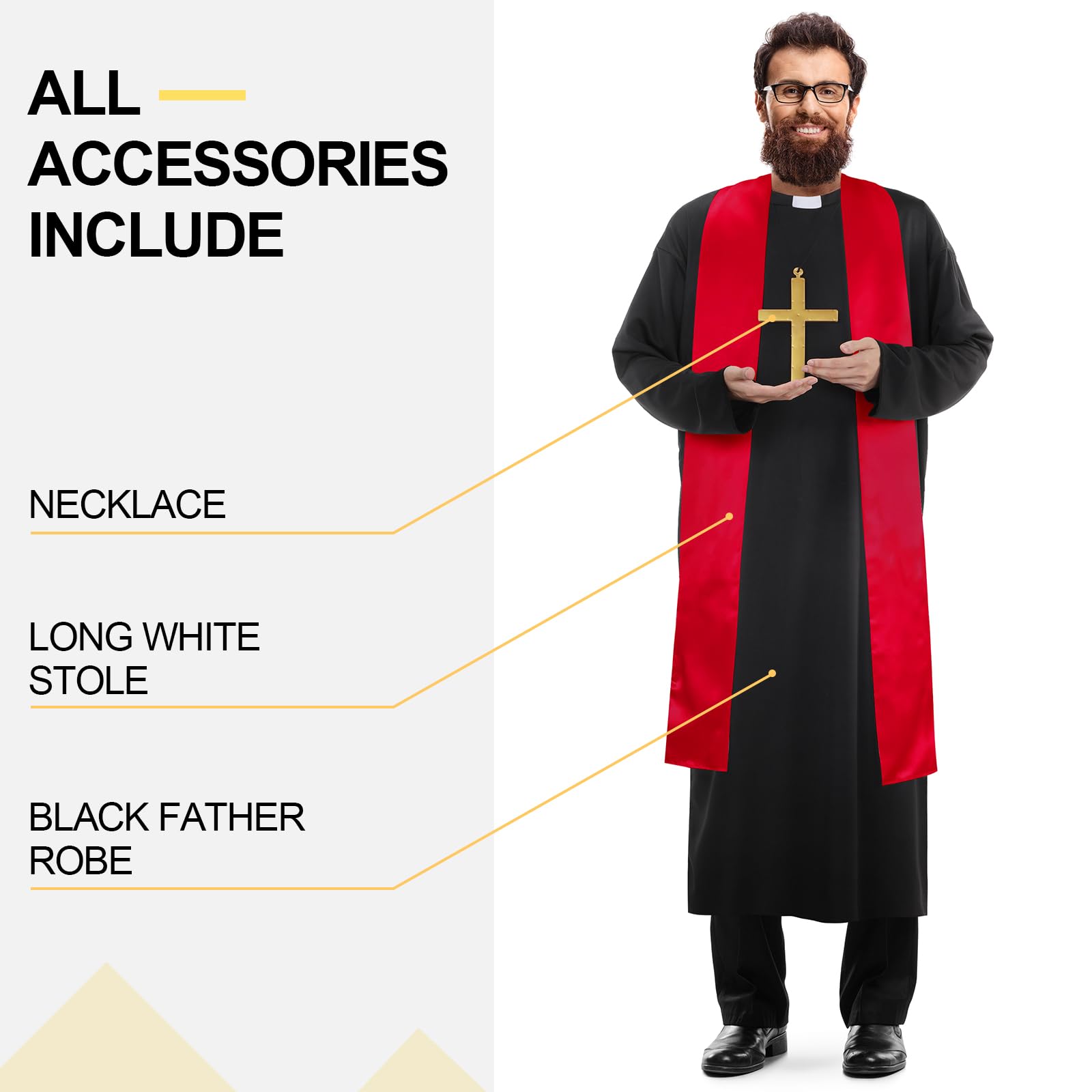 Quality Material: Halloween robe is made of polyester, priest stole is made of stain material, which are skin friendly, soft, comfortable, and the necklace is made of plastic, sturdy and not easy to break or fade, offering you long time application