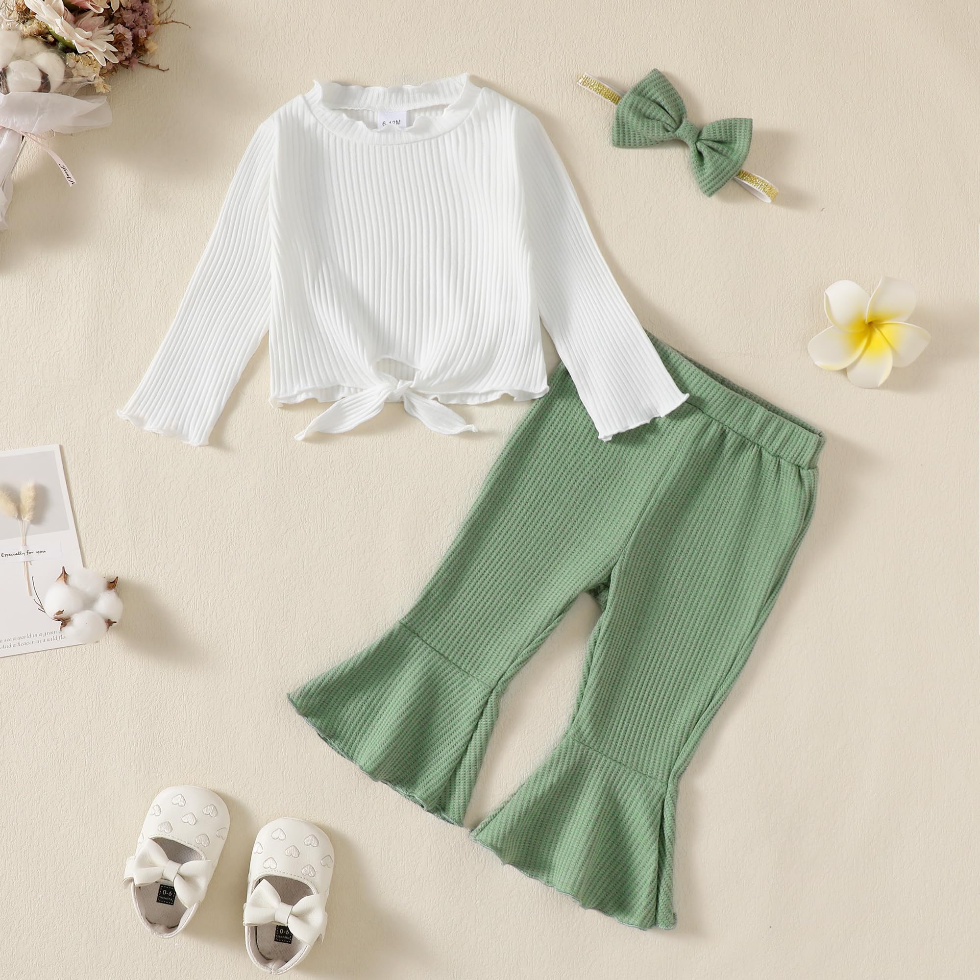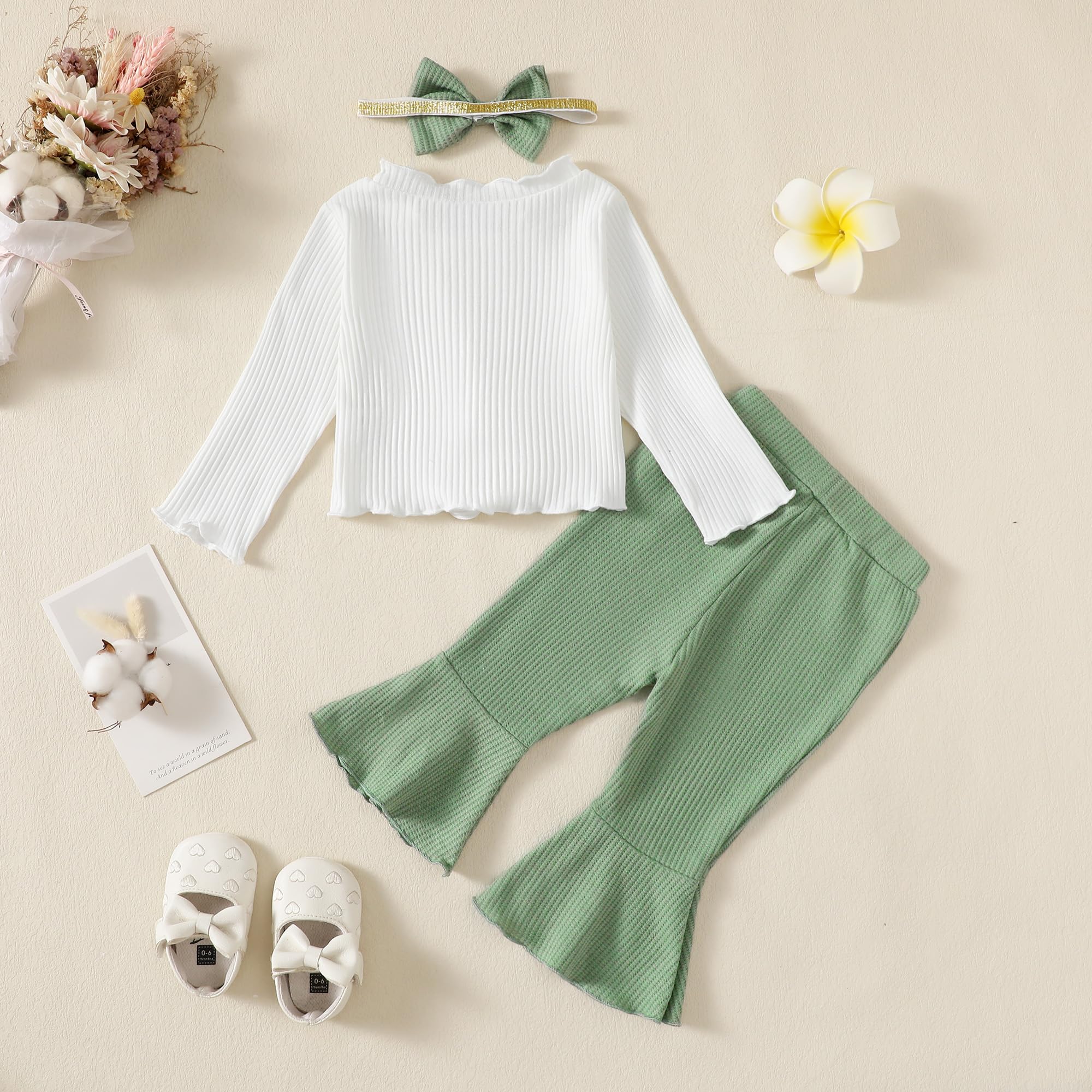 Package includes 1pc long sleeve shirt + 1pc baby girl pants + 1pc untied headband.