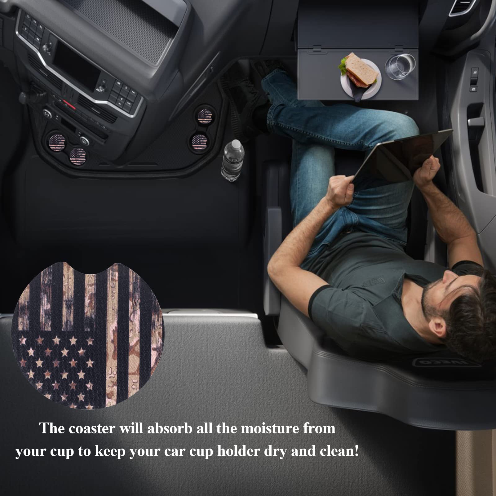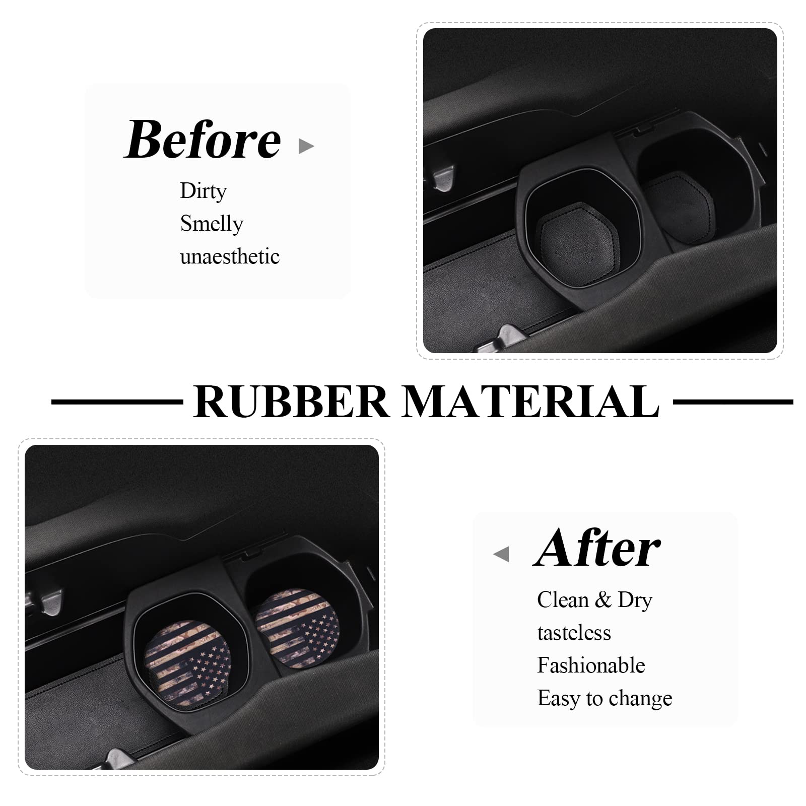 HIGH-QUALITY: Car coasters are made of neoprene. keep the from sliding at all and protect your cup holders. The car coaster is soft and elastic. It can protect your cup.