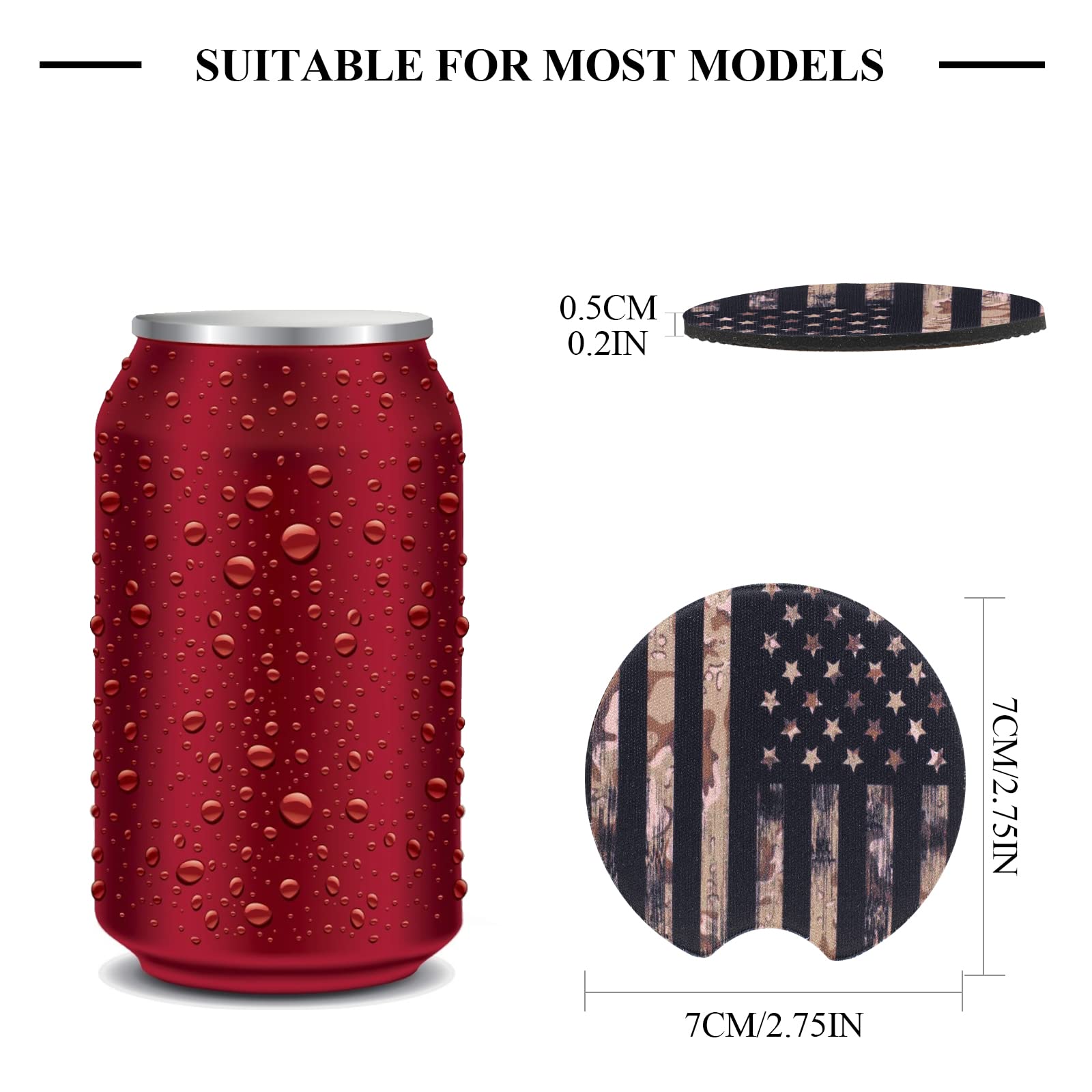 PERFECT GIFT: This is the perfect gift choice for your family or friends. Diameter 2.75 inch, thick 0.2inch. These car cup holder coasters are general dimensions. We suggest that you measure your size to make sure it matches.