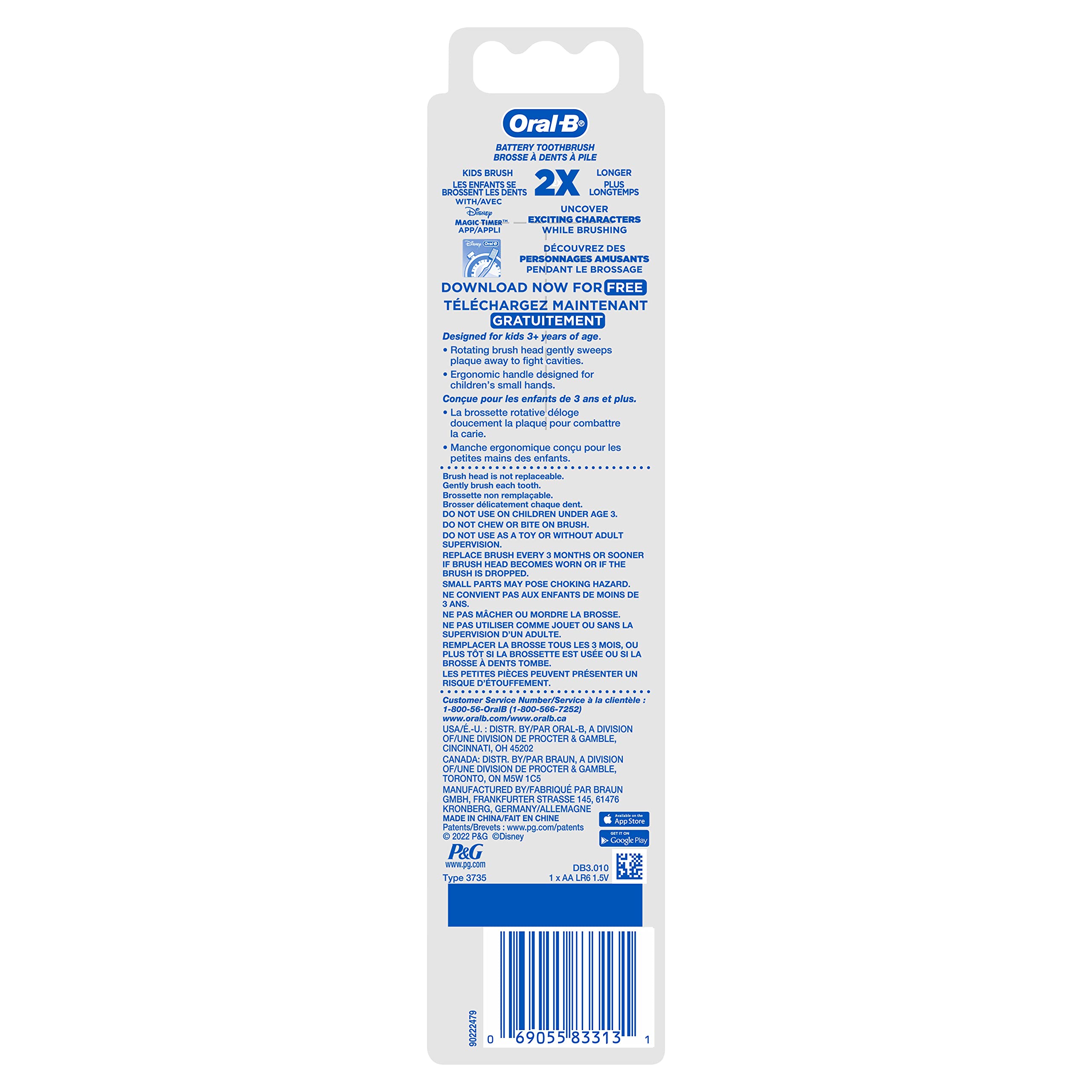 The Power to Smile Like a Princess. The Oral-B Kids Battery Powered Toothbrush is the perfect battery powered toothbrush for your own little princess. At this stage of their evolving oral health, kids will lose some baby teeth as their permanent teeth start to grow. This toothbrush is an advanced childrenβs toothbrush with the added benefits of battery power to help them get the most out of their brushing routine. Best of all, this battery powered toothbrush is compatible with the interactive Disney MagicTimer App by Oral-B to help your kids brush for a dentist-recommended 2 minutes. Package includes 1 Battery Powered Princess Toothbrush (battery included).