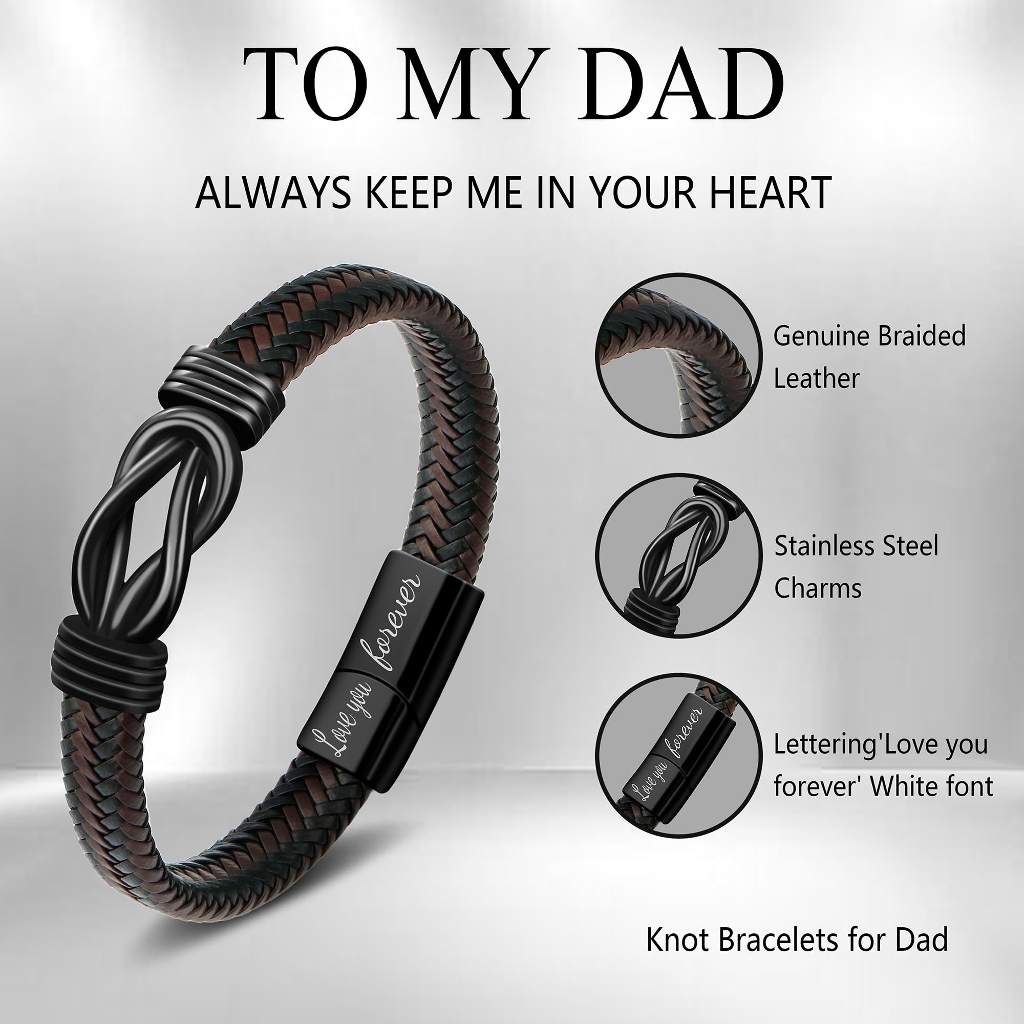 🎁【Meaningful Gift for Dad】This knot bracelet means always linked together, and lettering love you forever. Through this knot bracelet you can directly express your love for him, no matter when, no matter where you will be by his side.