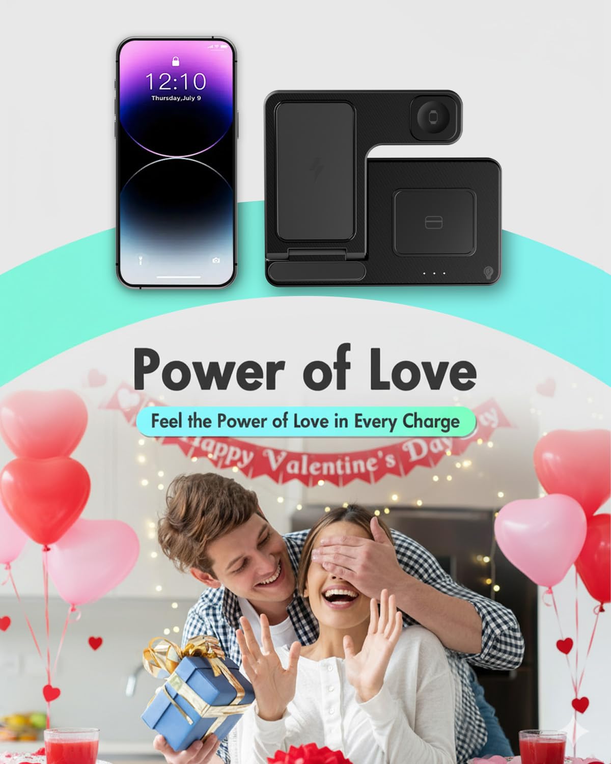 3 in 1 Wireless Charger Station: This 3-in-1 wireless charger is designed to work seamlessly with a variety of devices, including iPhone 16 15 14 13 12 11 8 Pro Max Mini Plus X XR XS Max SE Plus Series, Apple Watch Series 10 9 8 7 6 5 4 3 2 SE and Ultra, AirPods 2 3 4 Pro 2 (Note: for Airpods 2 3 4, needs work with a MagSafe charging case). A perfect Christmas present for couple (to husband or wife), son, daughter, or any loved ones.