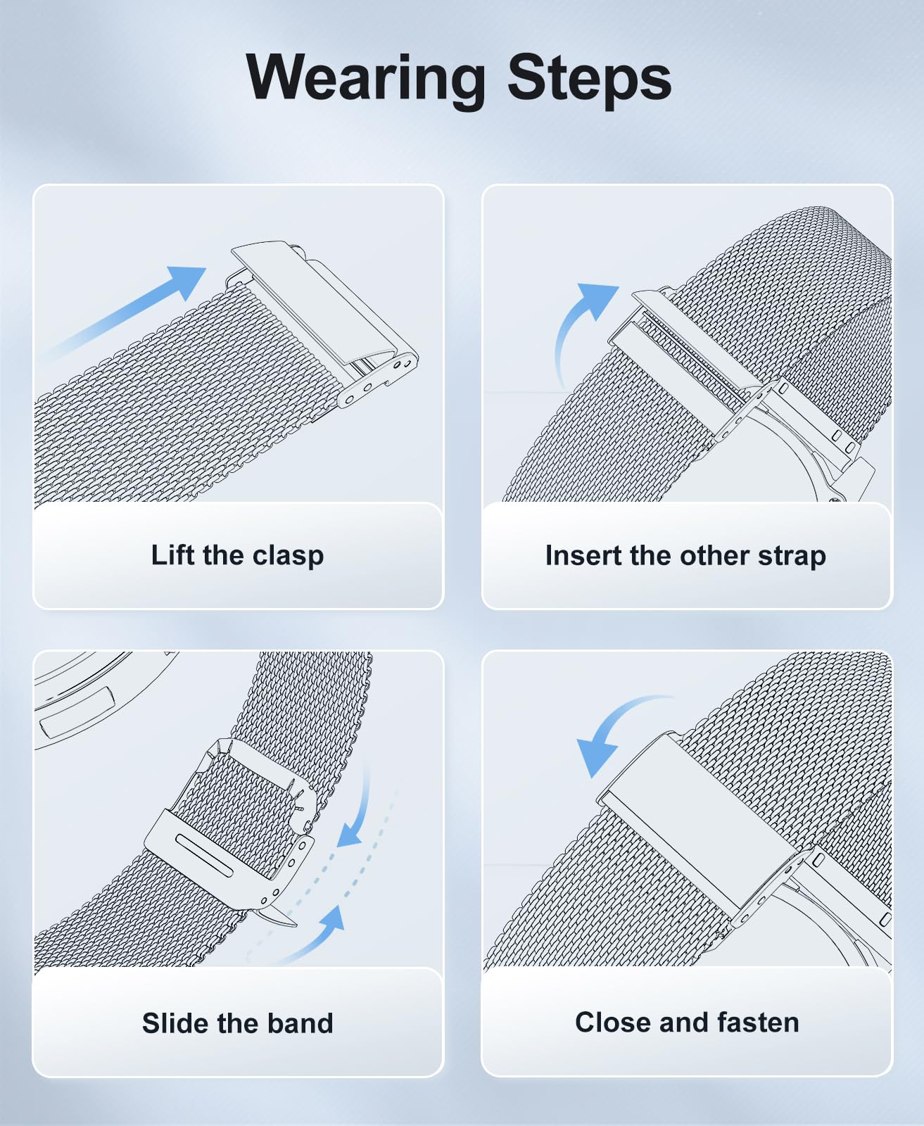 Material: The strap is made of mesh stainless steel band, comfortable and soft and breathable