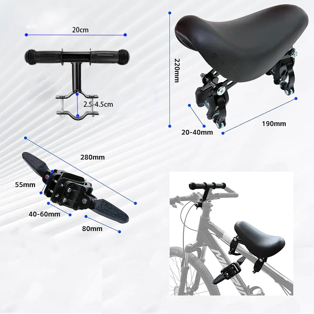【Safety and Comfort】The kids MTB seat is unique and stylish and also designed ultra durable aluminum alloy. The adjustable and soft saddle will not affect the balance of riding. You can concentrate on driving the bike without worrying about the child’s unexpected movements.