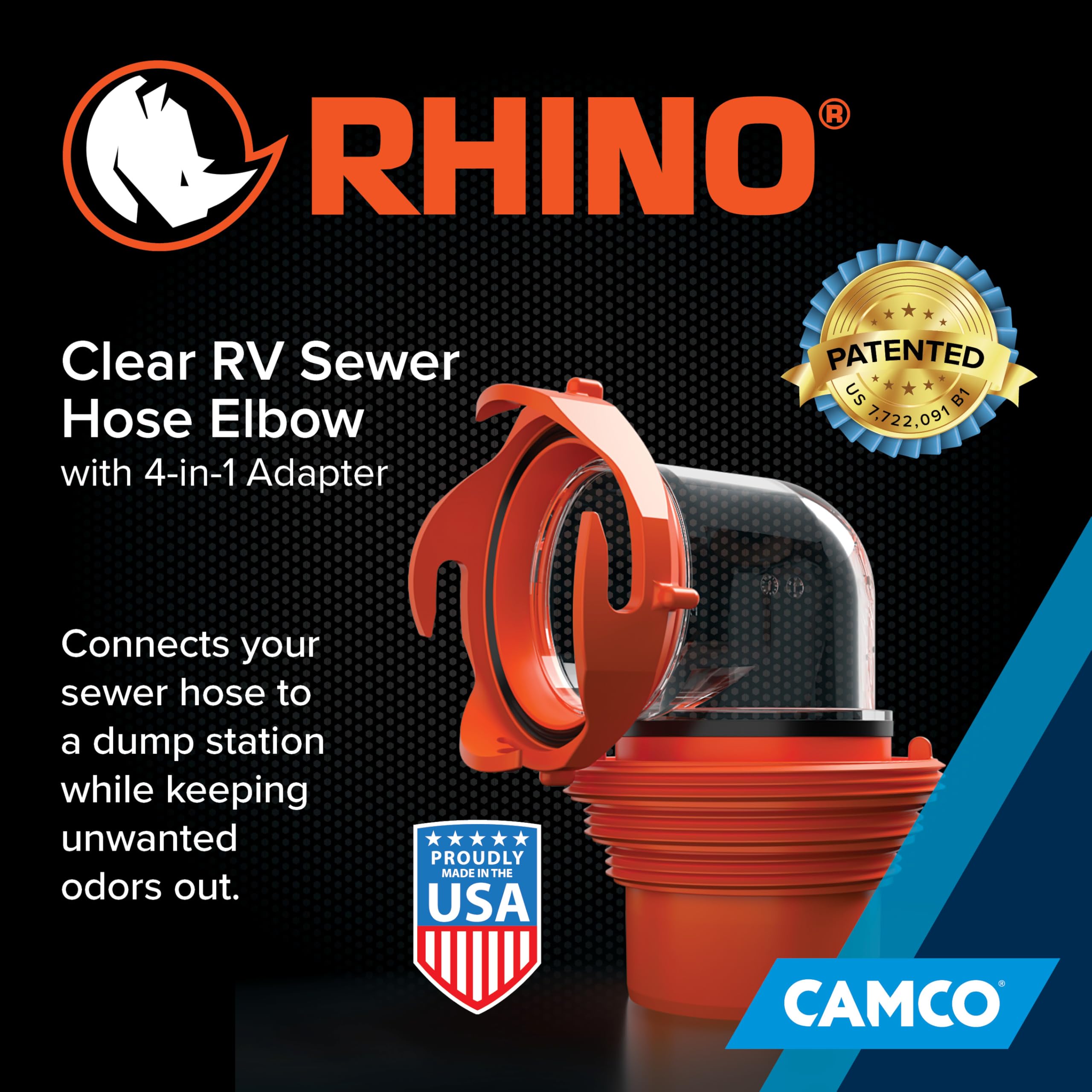 Odor-Tight Secure Connection: Camco’s Rhino RV Sewer Hose Elbow with 4-in-1 Adapter offers a snug, leak-proof link between your camper sewer hose and the sewer dump station, effectively blocking any unwanted smells.
