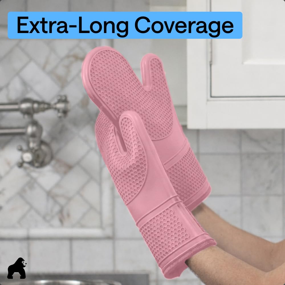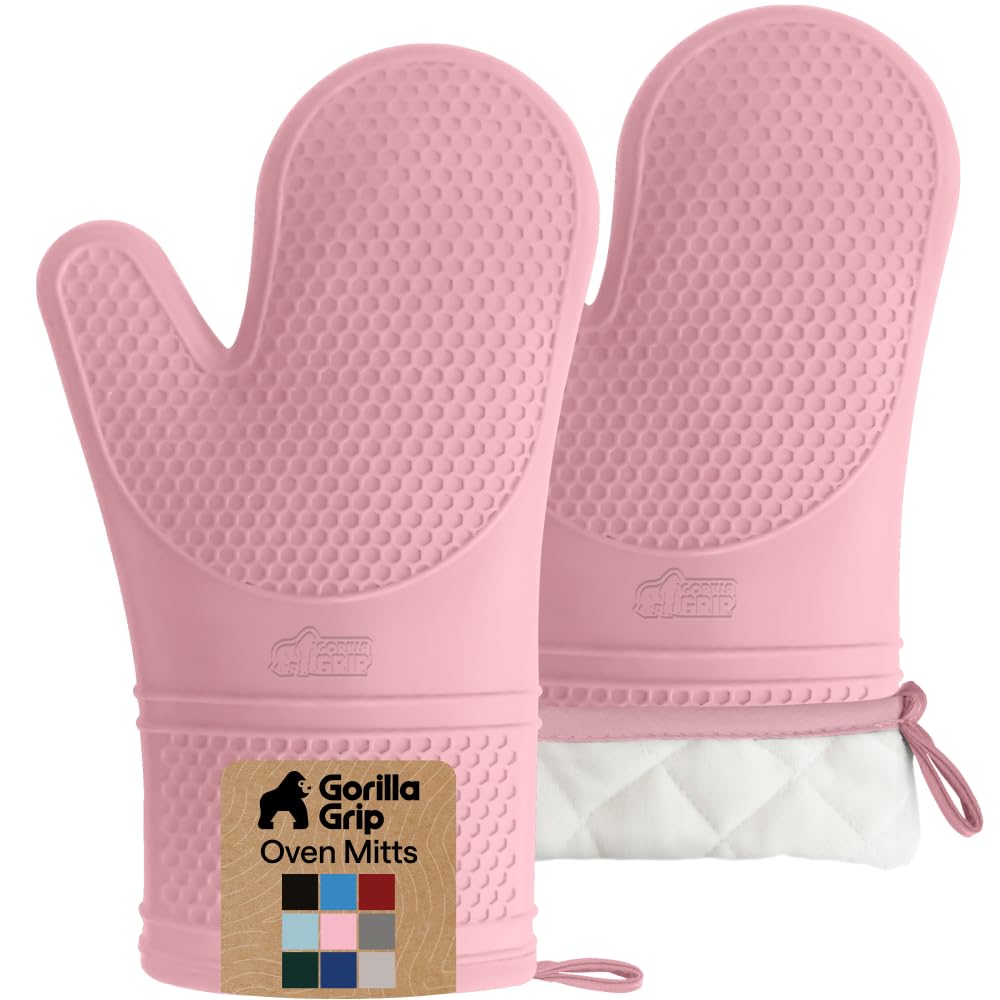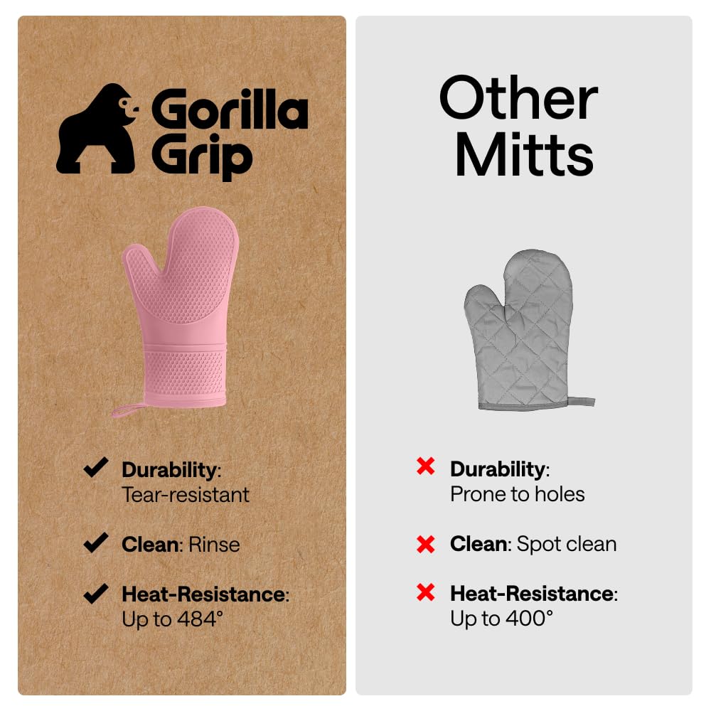 WATERPROOF AND STAIN RESISTANT: no more constantly stained oven mitts; Gorilla Grip Silicone Mitts are both stain resistant and waterproof; spills can easily and instantly be rinsed away under water; hot liquids won’t soak through and scald your skin as they would with other materials