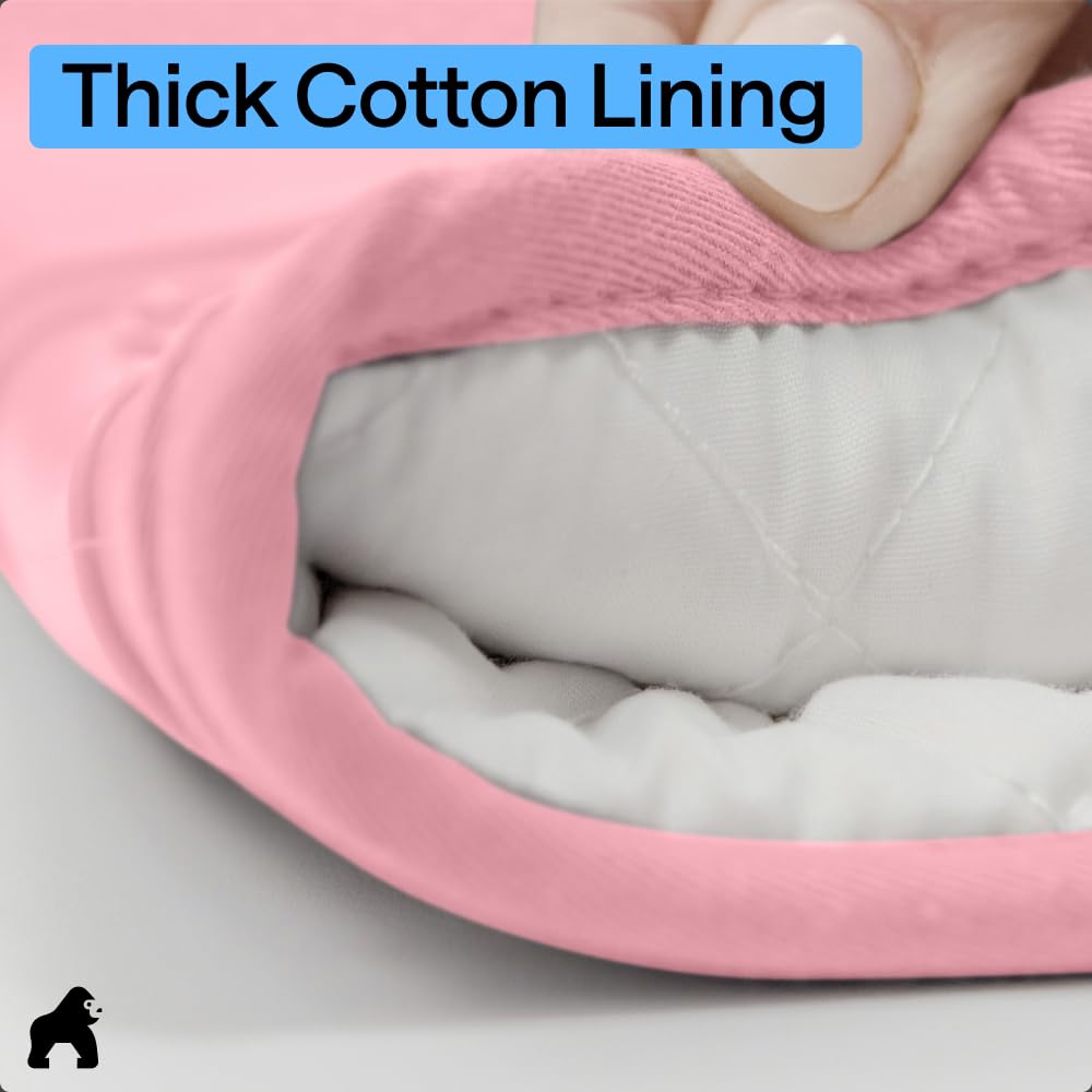 THICK COTTON LINING THROUGHOUT: stay comfortable while you cook; soft cotton lining offers additional protection and comfort, and feel simply amazing; plus, silicone is flexible and conforms easily to your unique grip