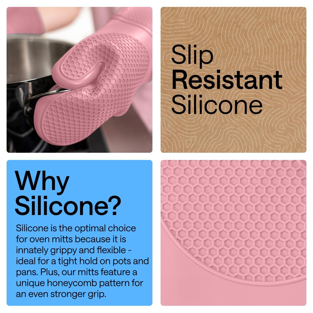 GET A BETTER GRIP: the best oven mitt pair; constructed of durable silicone, mitts are naturally slip resistant, helping you to get the best grip while you cook; unique textured honeycomb pattern helps you hold tight to pans, pots and baking sheets without hindering your natural grip