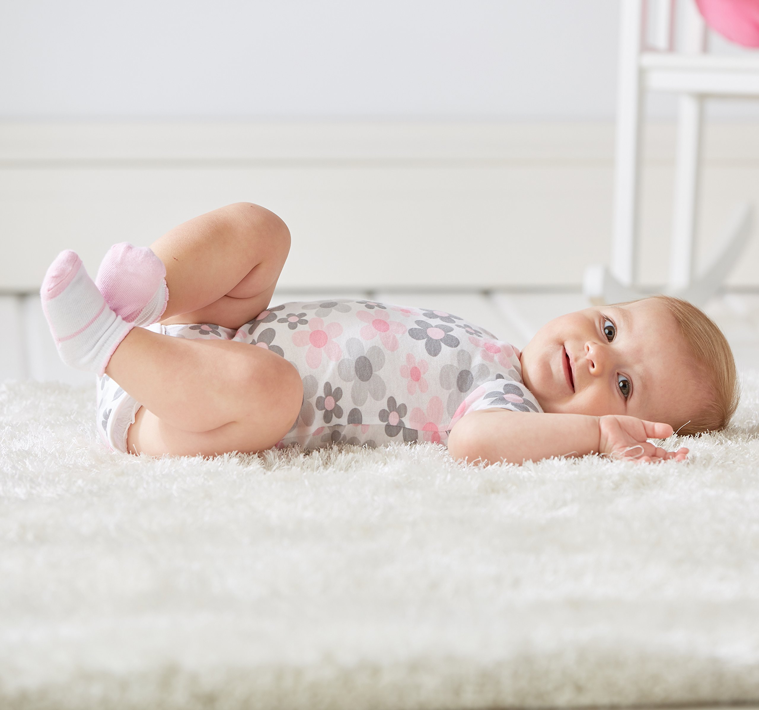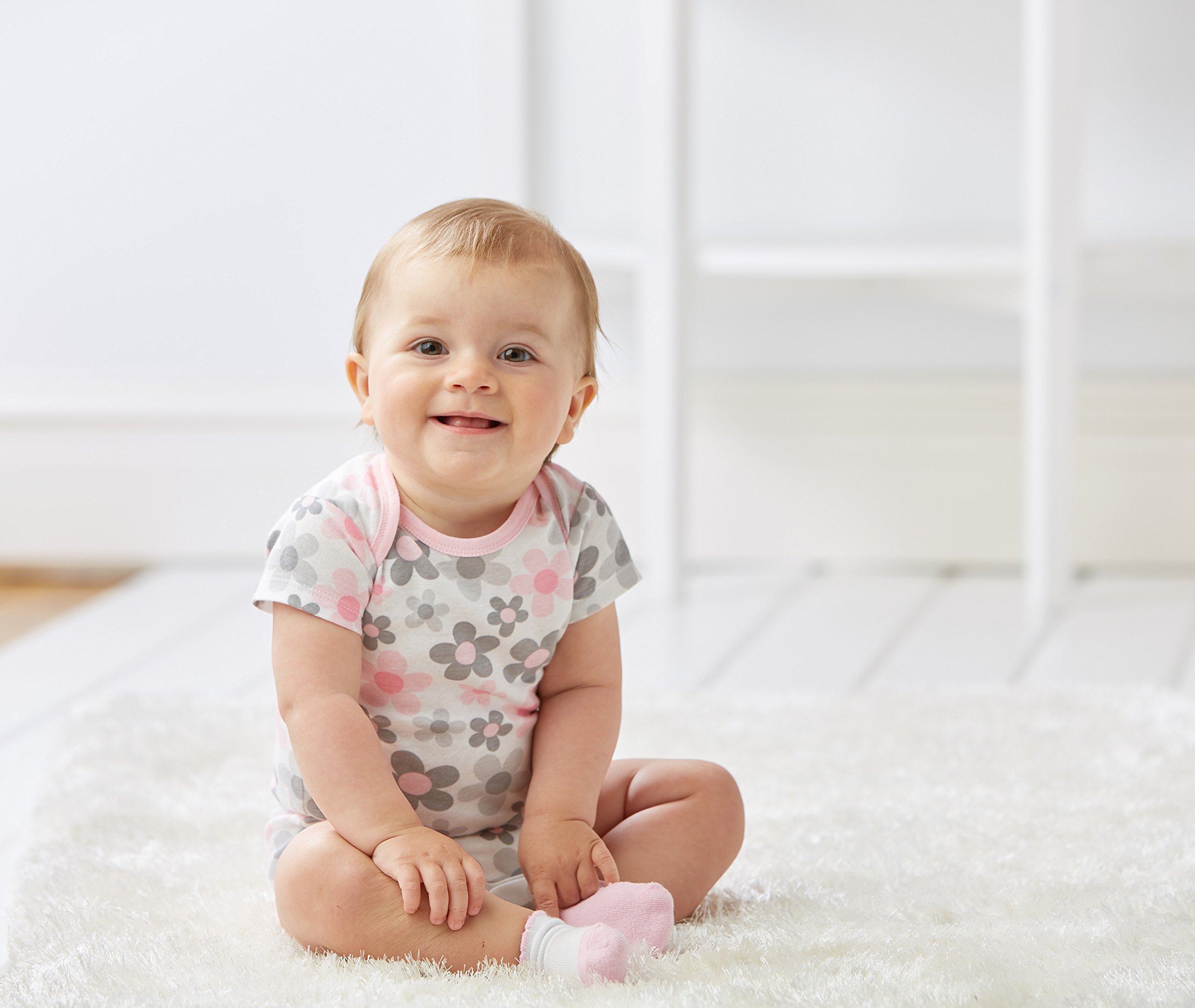 Description Your little girl will start the day looking her best dressed in one of these Gerber Onesies brand short sleeve bodysuits! Moms and dads will appreciate the higher-in-the-front bottom nickel-free snaps closure that makes for fast and easy diaper changes. 100% cotton rib for breathability and comfort. Mix and match with your favorite bottoms to create a complete look. An essential item for new parents, great for gift giving.