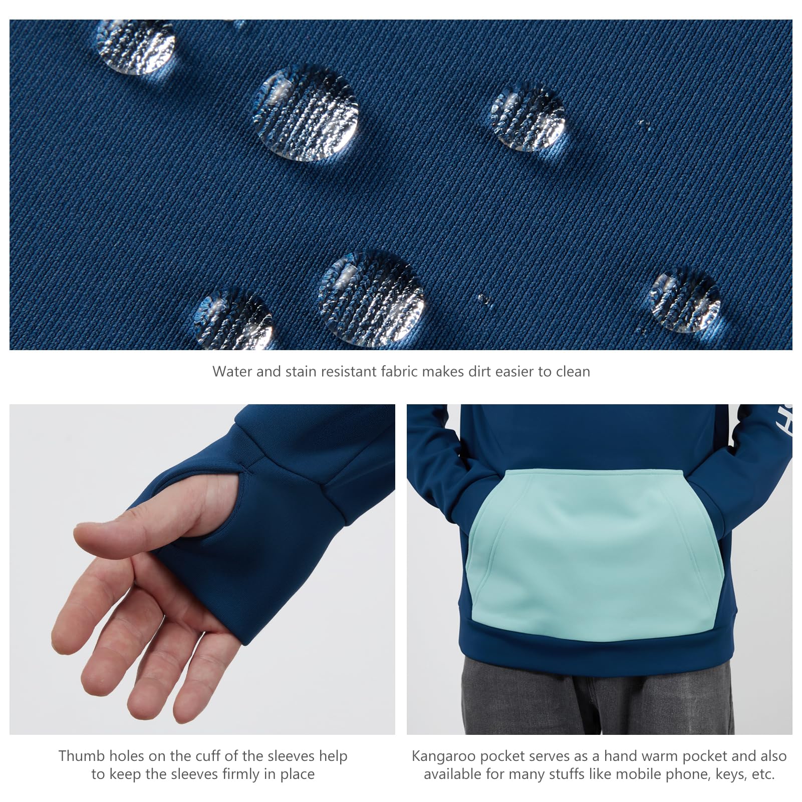 Big kangaroo pocket serves as a hand warm pocket and is also available for personal stuffs like mobile phone, keys, etc; Thumb holes on the sleeve cuffs help to keep the sleeves firmly in place