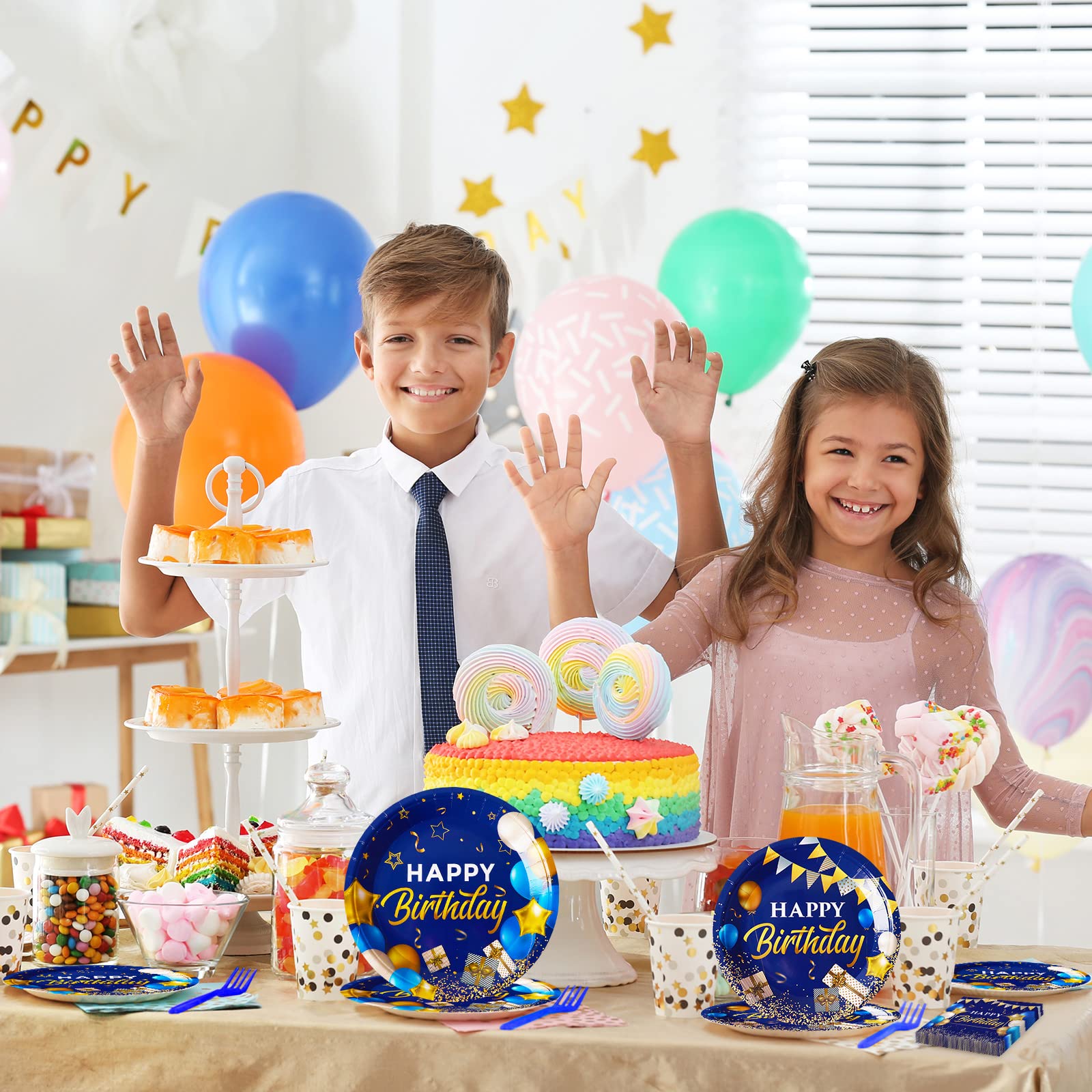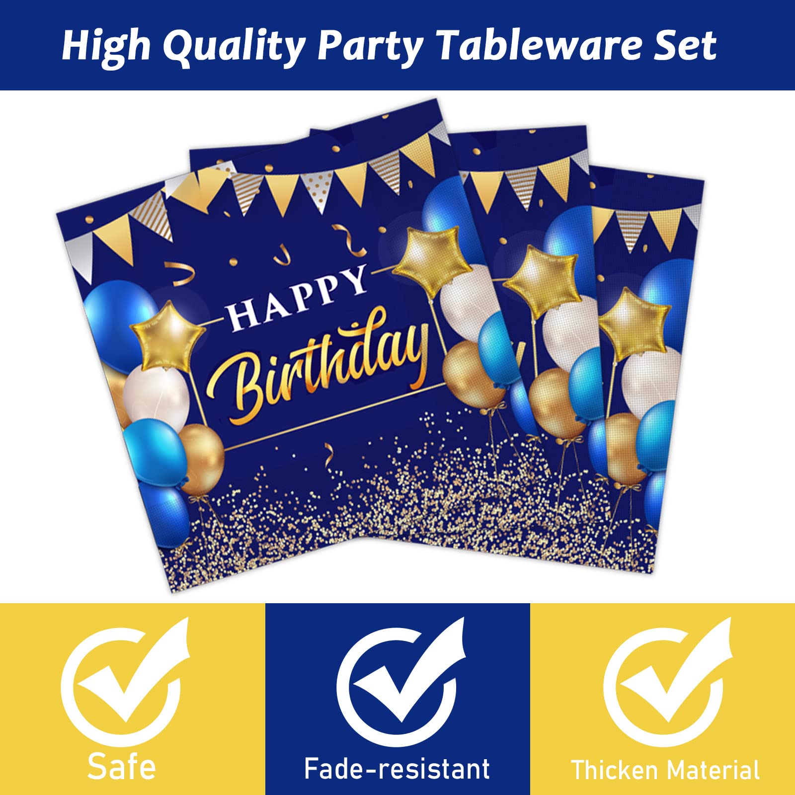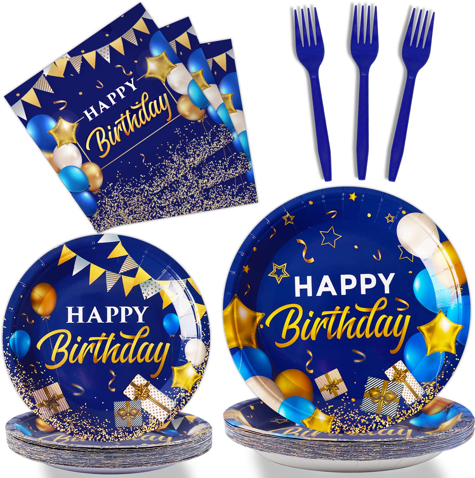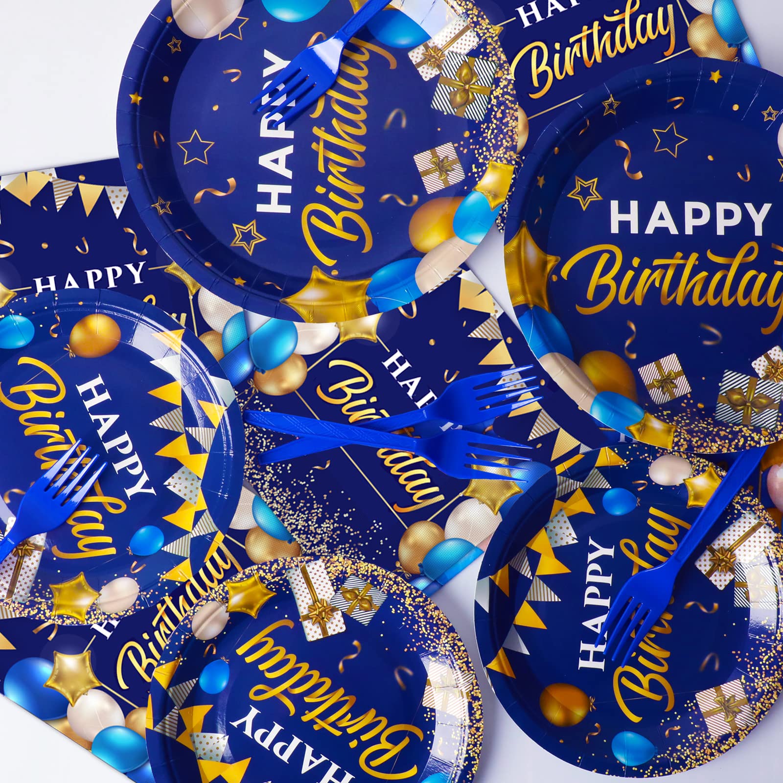 【Premium Material】All of our blue and gold theme plates and napkins are made of quality paper, non-toxic, no smell, heat-resistant and durable. The pattern and color are well-printed and fade-resistant to provide you with a party that full of happy birthday atmosphere.