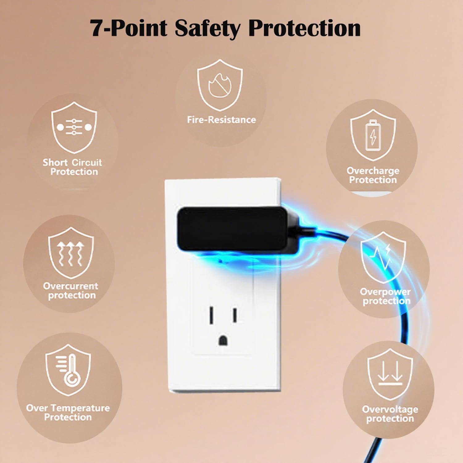 Input 100-240V AC, 50/60Hz; supports global voltage for international use; reliable performance for home or travel;FCC approved and safety certified; built-in overcurrent protection (OCP); short-circuit protection (SCP); overvoltage protection (OVP) for safe use