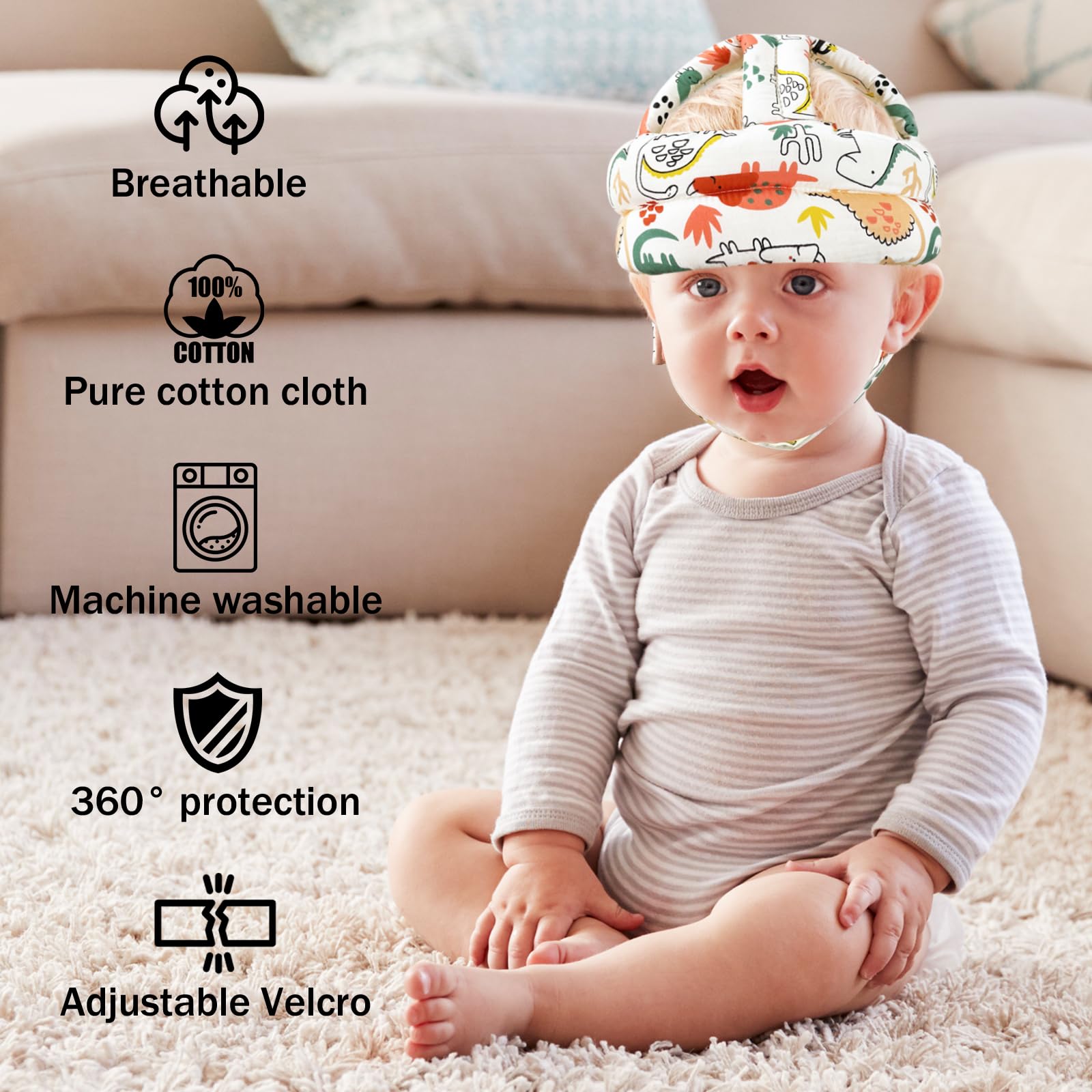 【Adjustable Size】It'll fit the baby's head with a circumference of 16.2-20 inches to suit any size of infant head,offers maximum safety with comfort for your loved kids.