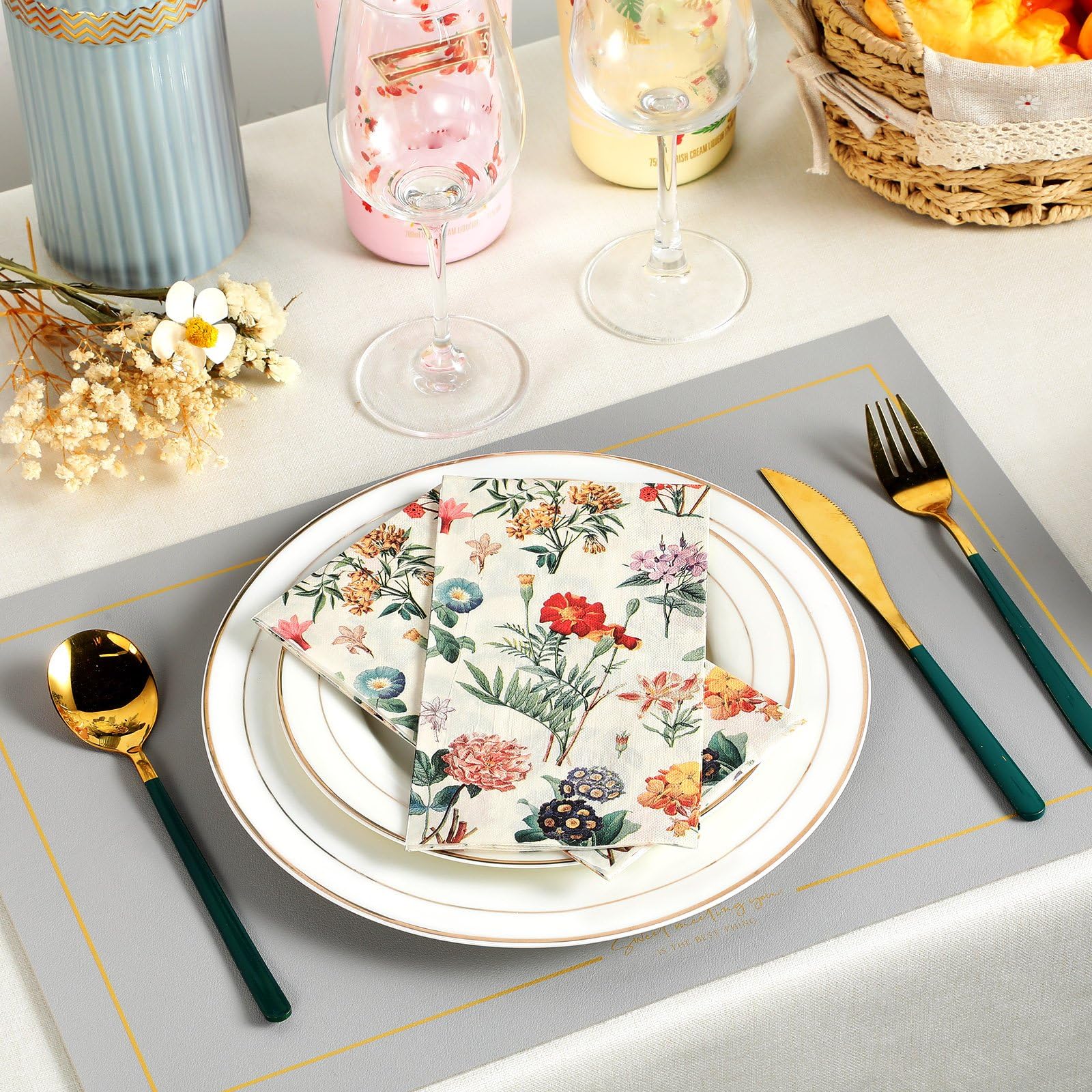 Size Detail: these vintage flower paper napkins are 4.3 x 7.9 inch folded and 13 x 15.8 inch unfolded, which size is very suitable for delicate plates; These vintage flowers will decorate your table perfectly and your friends will love it