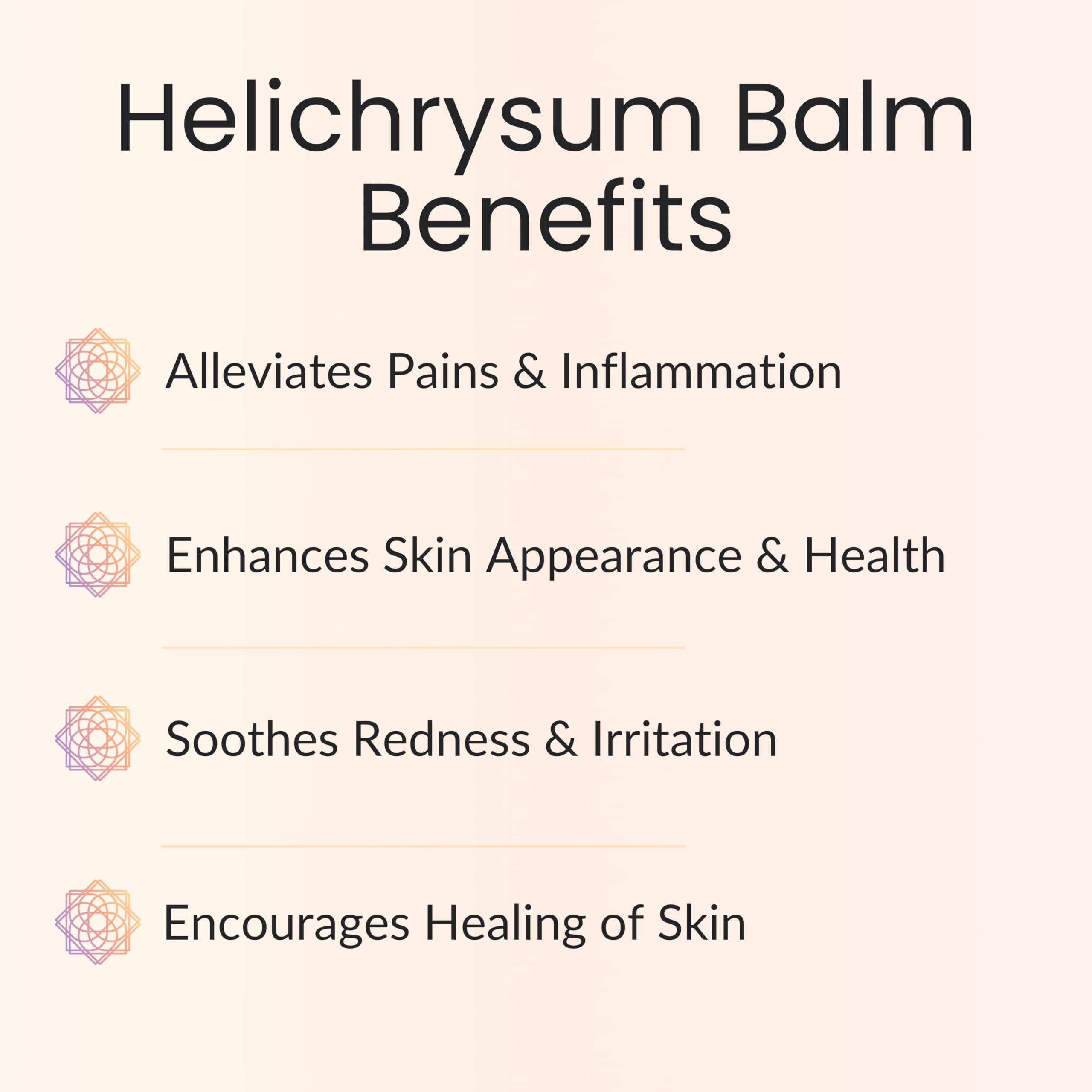Helichrysum Balm: Olive Oil, Almond Oil, White & Yellow Beeswax, Helichrysum Essential Oil, Tocopherol