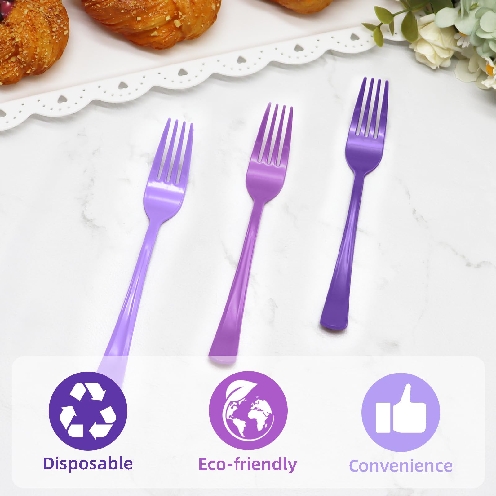 【Don't Worry About Quality】:These purple plastic forks are made of high quality plastic, strong and durable, hard to break. The surface is polished, safer to contact with food. High-temperature resistant and suitable for all types of food, the purple plastic forks meets customers' needs.