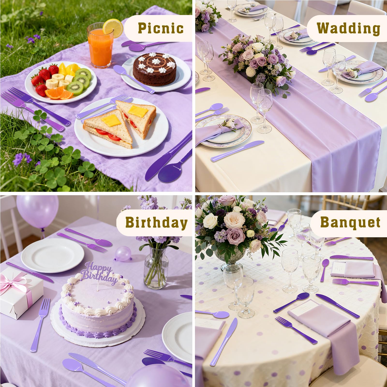 【Sufficient Quantity】:This set includes 20 pieces each of three different shades of purple plastic cutlery, totaling 60 pieces—so you'll never have to worry about running short. Purple plastic silverware forks effortlessly handles everything from main courses and desserts to salads, Offering multiple different color options, they are sure to match your decor.