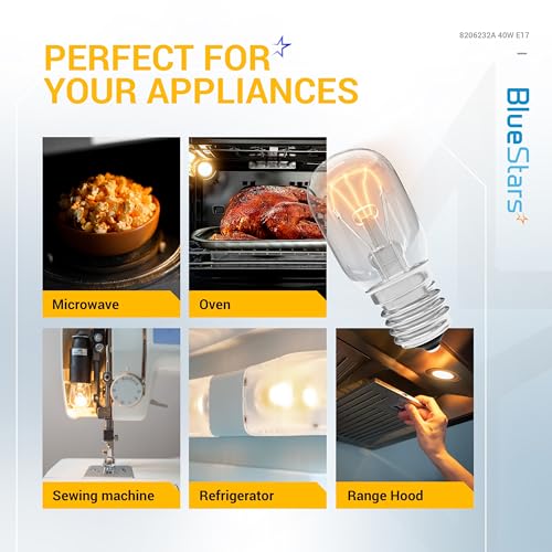 MULTIFUNCTION BULBS WITH PREMIUM QUALITY: The 8206232A E17 40W microwave light bulbs are used for repairing different small household appliances including microwaves, the lava lamps, refrigerators, ovens, fans, sewing machines, etc. These whirlpool microwave light bulbs are made from durable high quality material and well-tested by the manufacturer - Meets OEM standards - Ensure long-lasting and effective performance.