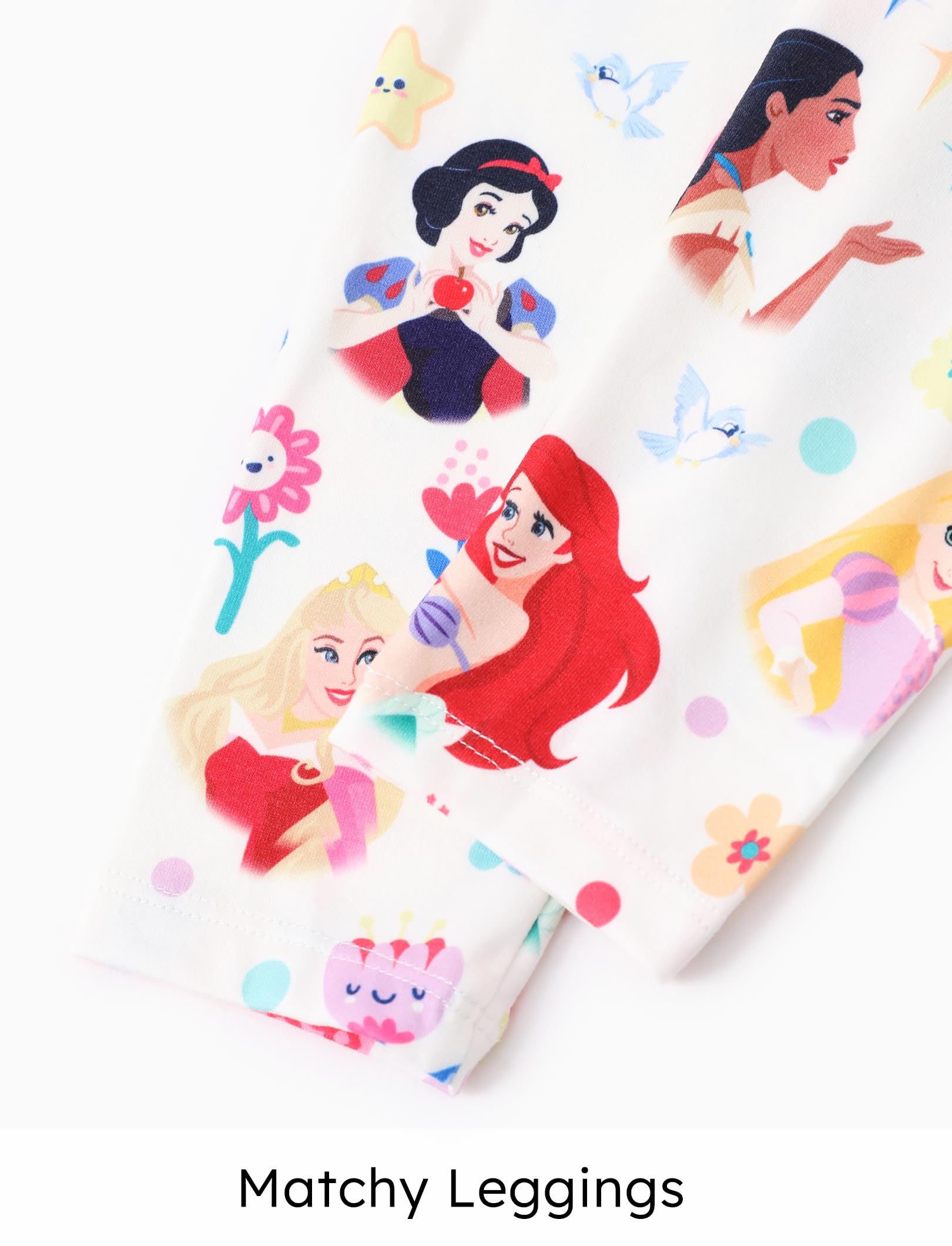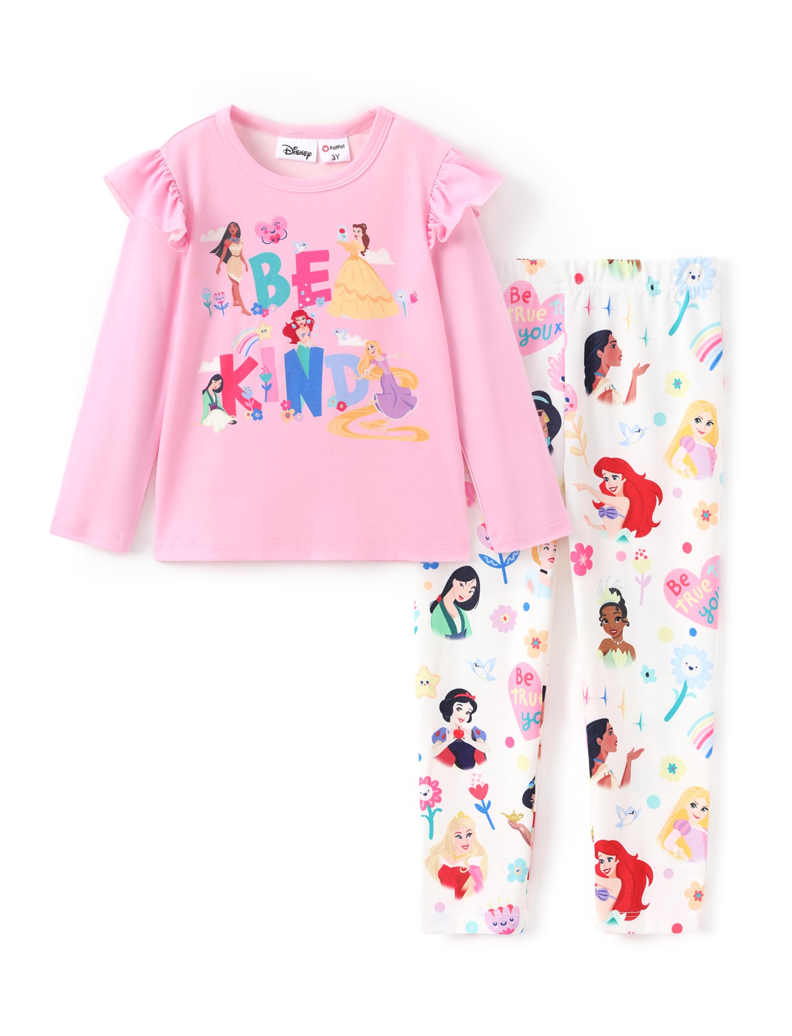 Charming & Playful Design: This girls disney outfits set features sweet flutter sleeves and a vibrant βBe Kindβ graphic with Pocahontas, Belle, Ariel, Mulan, and Rapunzel on the long-sleeve top. The coordinating leggings showcase an allover print of even more beloved princessesβSnow White, Aurora, Tiana, Jasmine, and Cinderella