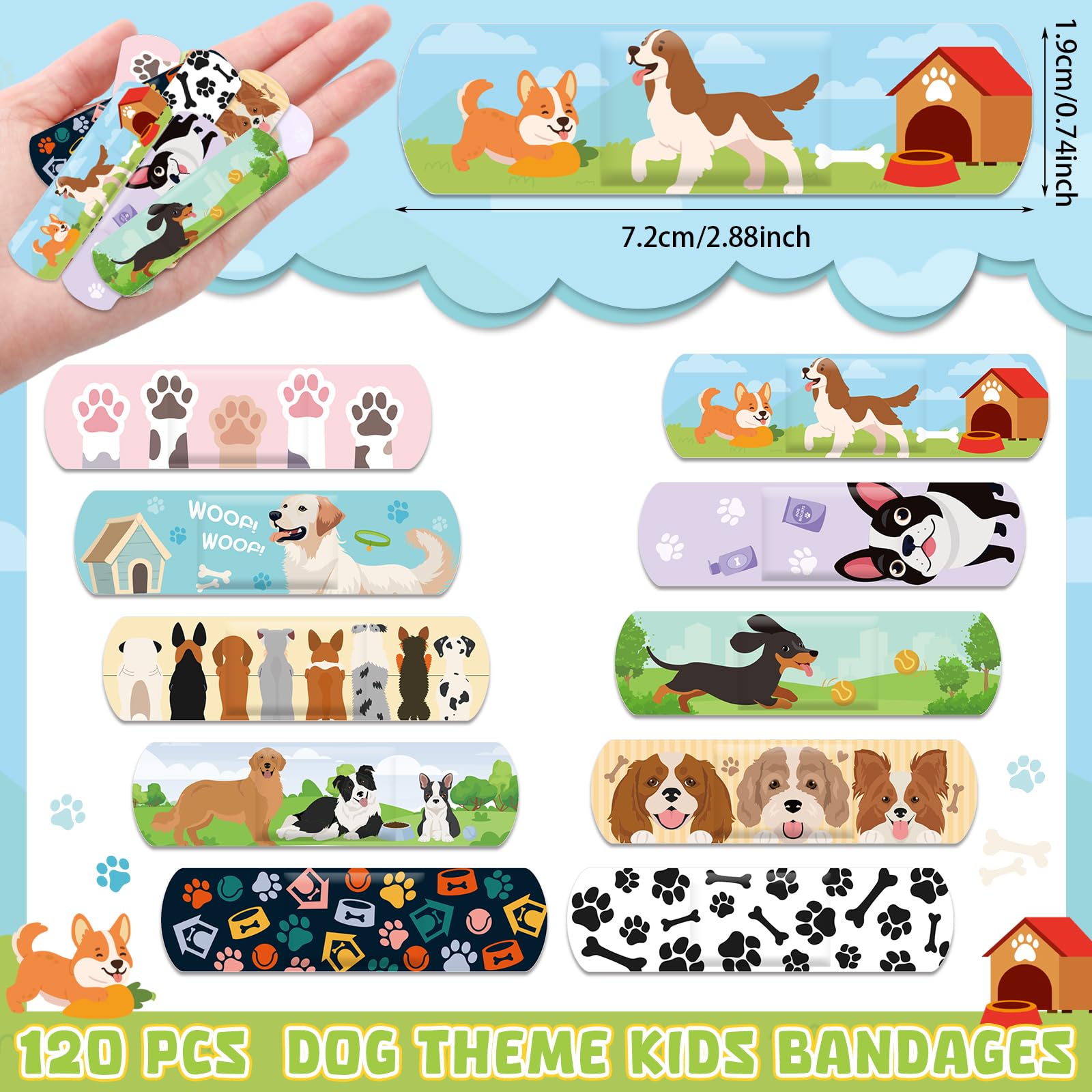 Dog Bandage: 120 dog themed bandages with 10 interesting and bright puppy pattern designs; These bandages not only help protect minor cuts and wounds, but also interestingly remind us that dog gives us comfort and love