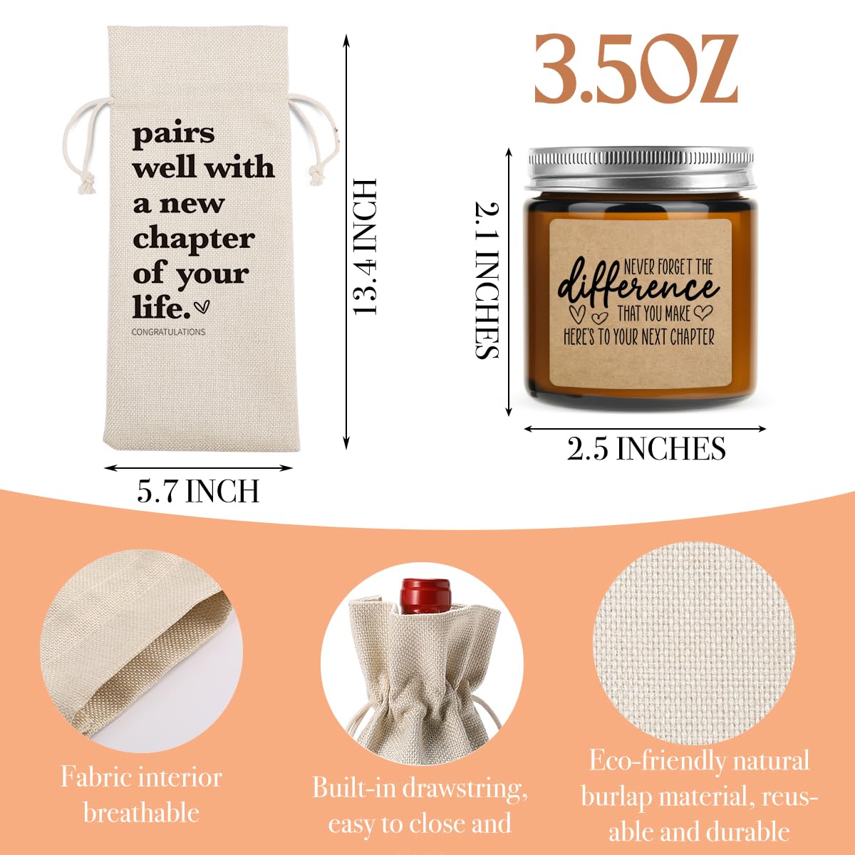 【New Chapter Wine Bag Scented Candles Set】Our wine bag scented candles set are printed with the words "Paies Well with a New Chapter of Your Life" and the scented candles come with congratulatory messages, conveying a message of blessings. It is very suitable to give as a gift to women, men, colleagues, teachers, leaders, bosses, co-workers, doctors, employees, friends, nurses, office workers or anyone special in your life.
