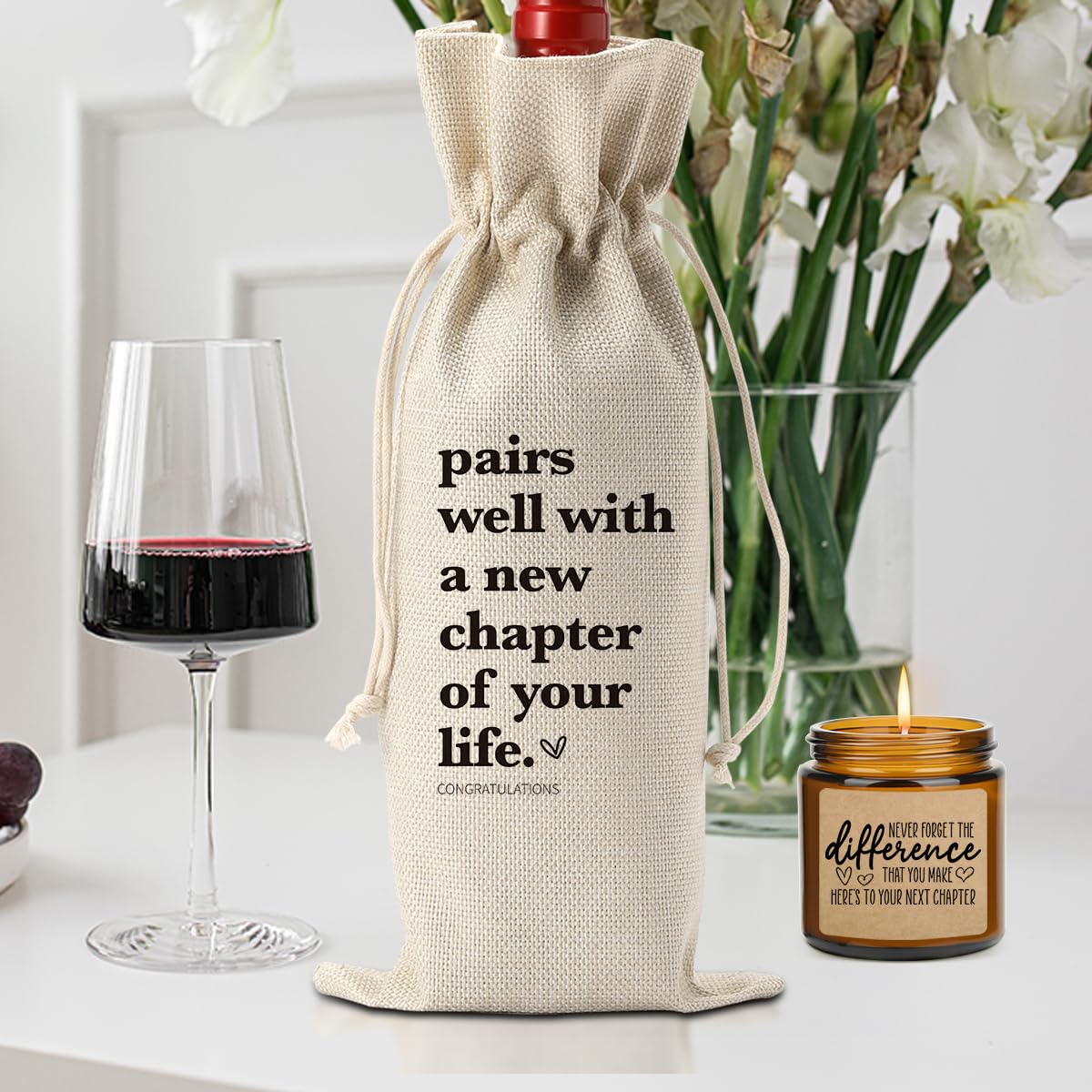 【New Chapter Gifts for Women Men】A special ceremony is needed to celebrate the beginning of a new chapter! This new edition wine bag with the scented candle is definitely a great choice. It is very suitable as new chapter gifts, new beginnings gifts, farewell gifts for colleagues, farewell gifts for coworkers, goodbye gifts, gifts for friends moving away, retirement gifts. With best wishes, I wish the special people in your life to embark on a new chapter!