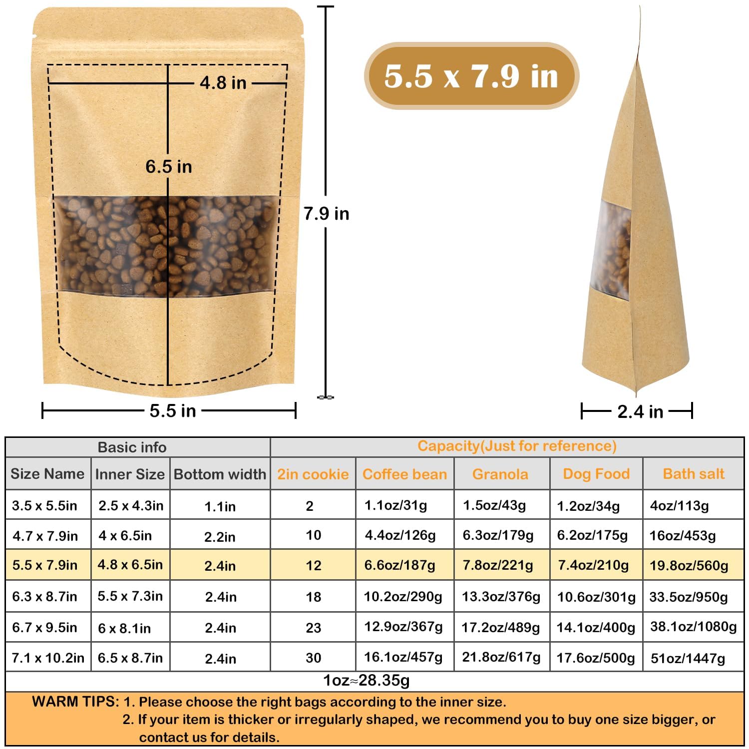 Reliable Kraft Paper Bags: Blisstime kraft paper bags are made from food grade kraft paper and PE, which is odorless, reusable and moisture proof, keeps your products freshness. Please purchase according to the usable sizes identified in the picture.