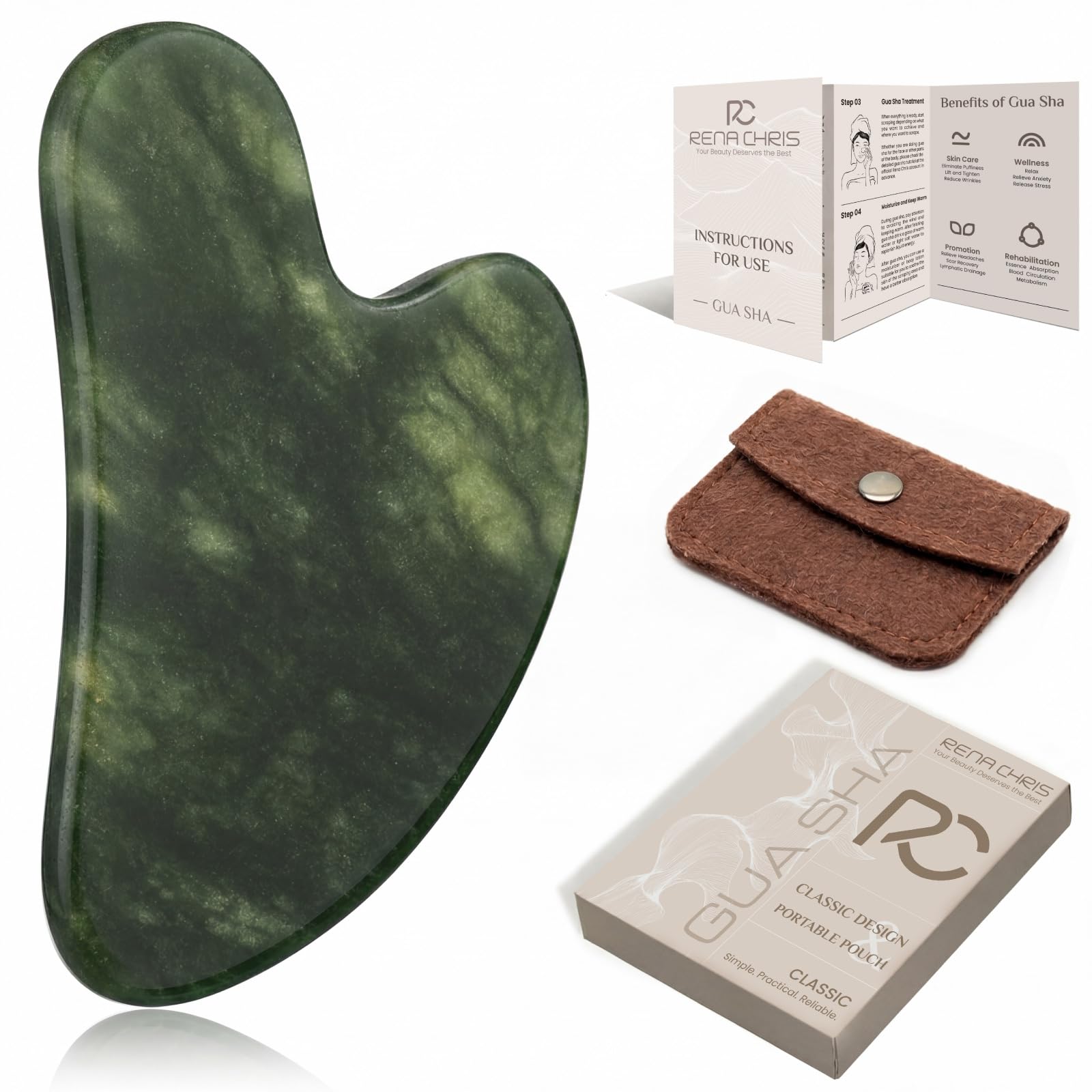 PACKAGE CONTENTS: Each order includes one gua sha tool, a protective storage pouch, and an instruction booklet, all neatly packed in a secure box. It makes a practical and thoughtful gift for friends or family