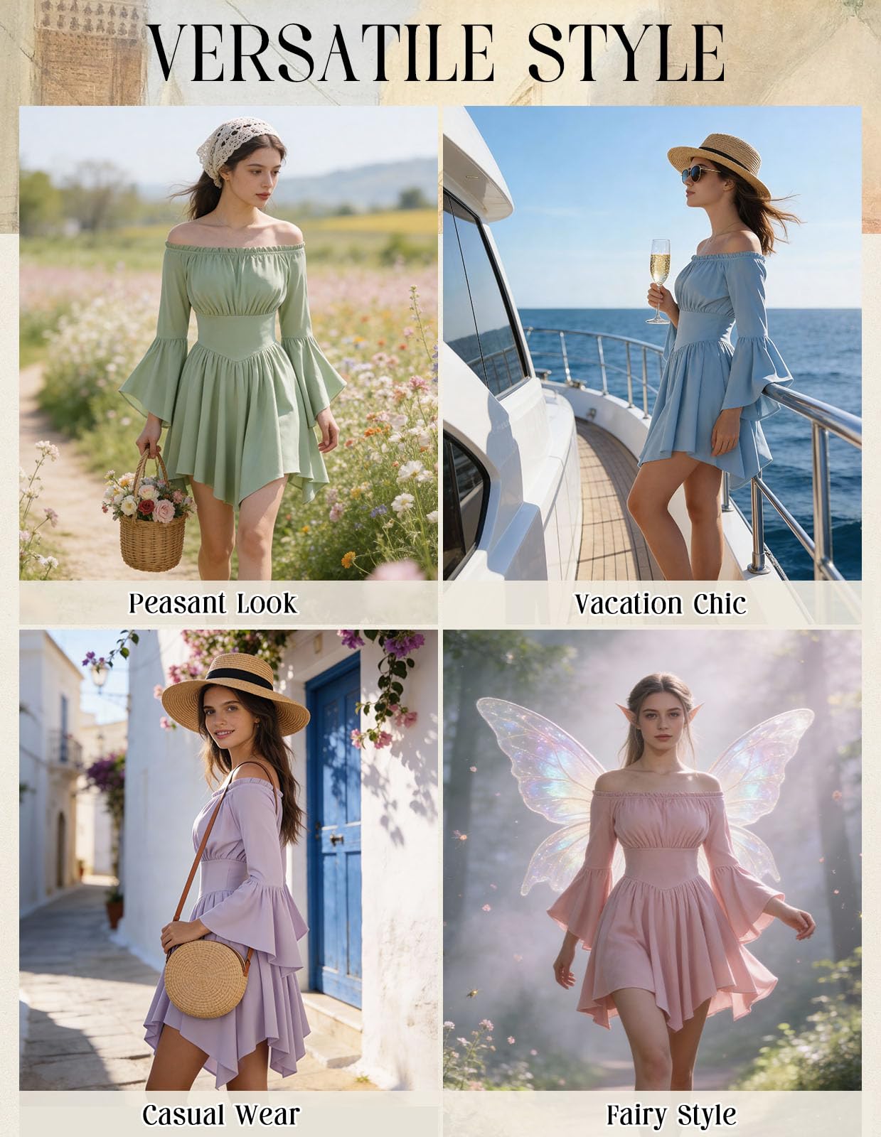 INSPIRATION - This women's off-shoulder dress features a stunning Renaissance-inspired irregular hem and beautiful agaric lace decoration at the neckline, creating a romantic and feminine silhouette