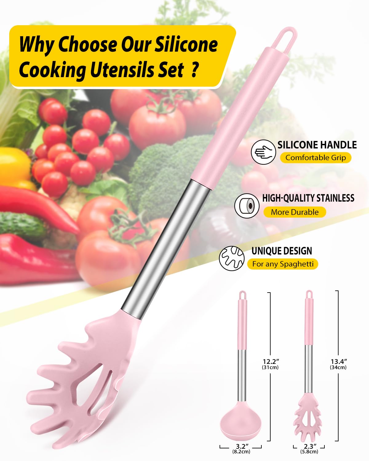 Thoughtful Design : The good-quality 18/8 stainless steel keeps you away from the trouble of kitchen utensils rusting or breaking; This anti-scald silicone handle is not easy to conduct heat and is more comfortable to hold than traditional utensils