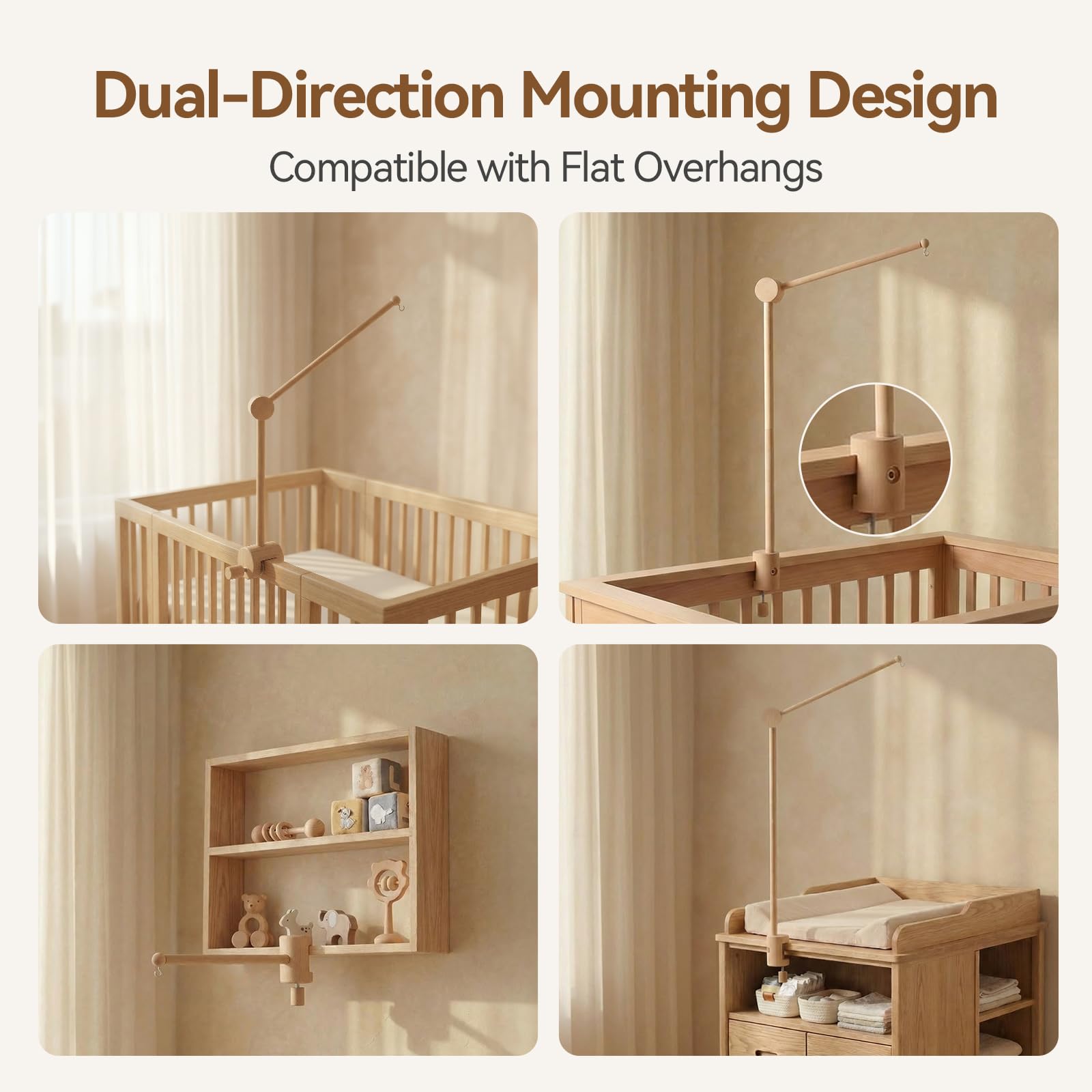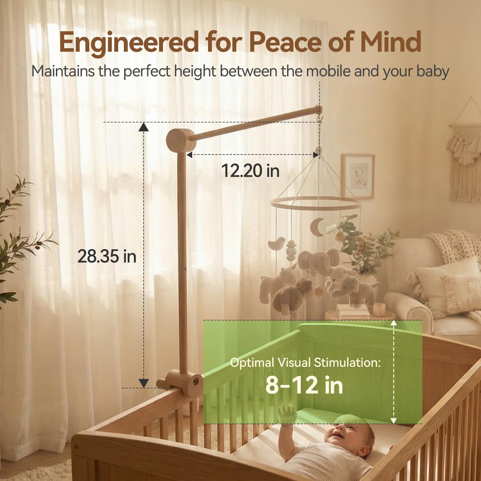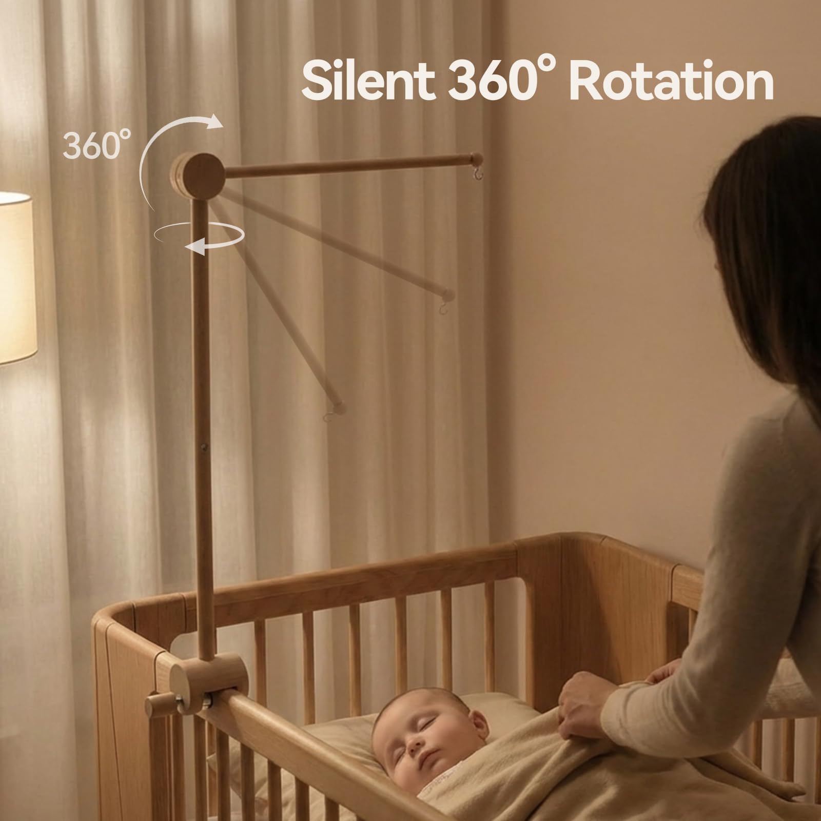 360° Vertical Adjustment - Easily adjust between two height settings to accommodate different crib sizes and baby mobile lengths, ensuring the perfect position for your baby’s comfort and engagement.