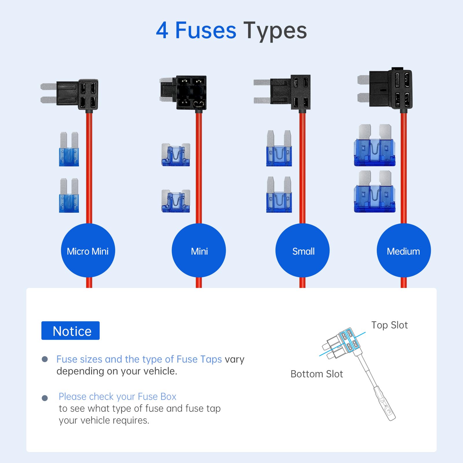 Multiple Safety Design: The hardwire kit for dash camera equipment has a multi-protection system, such as cut-off voltage protection, short circuit prevention, overheat prevention, cable reversal prevention, and so on.