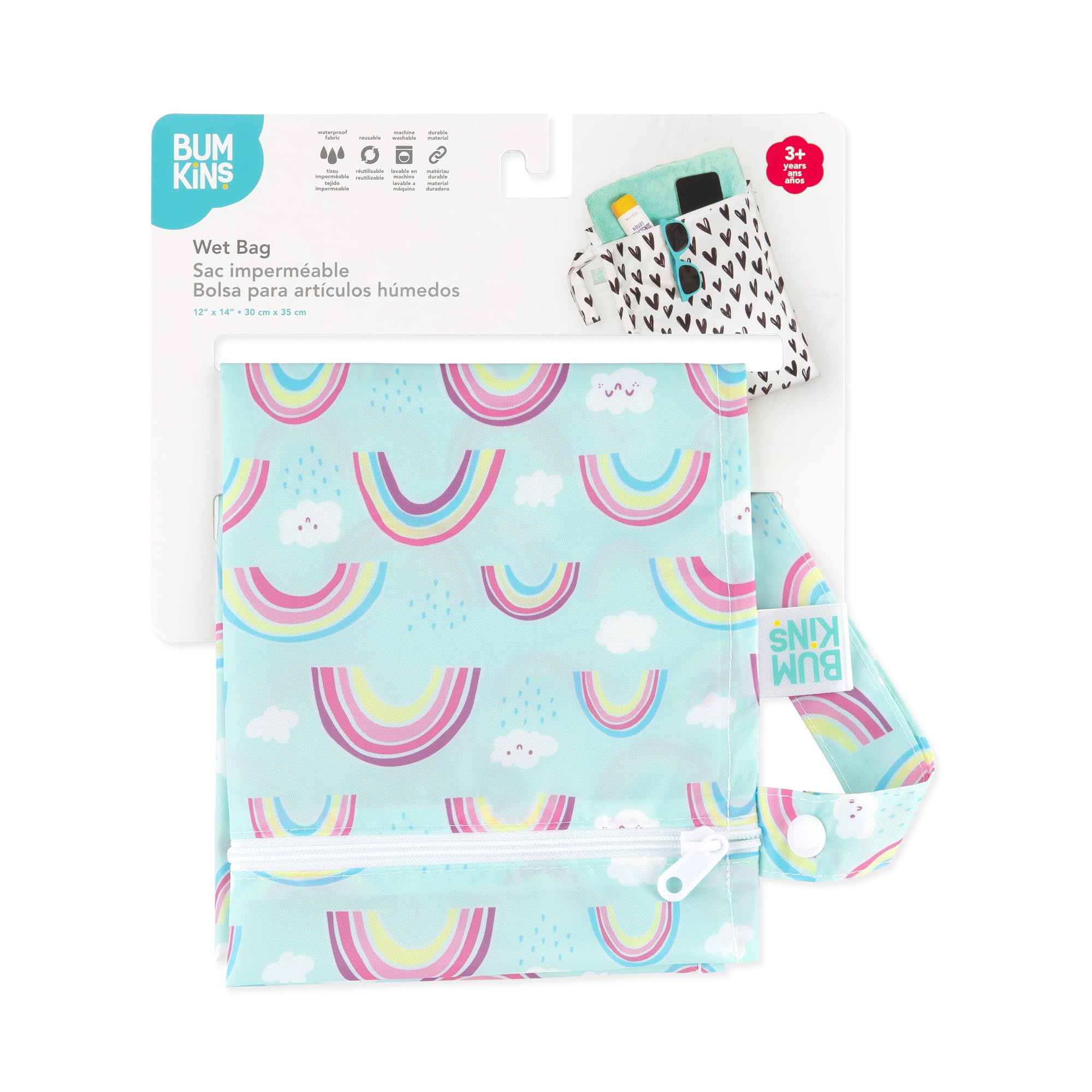 The better alternative to single-use plastic bags, our reusable wet bags are made from Bumkins’ signature easy-wipe waterproof fabric. Our bags feature heat-sealed seams for true waterproof protection. A smooth zipper closure locks away the mess. Wet bags are great for carrying diapers, dirty gym clothes and wet swimsuits. Not just for wet stuff - these bags make excellent organizers for toys, accessories, toiletries, electronics, travel and more! With a snap handle, snap your bag wherever you need it - stroller, changing table or suitcase. Plus, they're safe to use. BPA-free, PVC-free, vinyl-free, phthalate-free and lead-free. Machine washable. Measures 12"x14". Fits approximately 6 cloth diapers. Bags are single compartment, non-gusseted, non-insulated and non-stretch. Designed in Arizona, responsibly made in China.