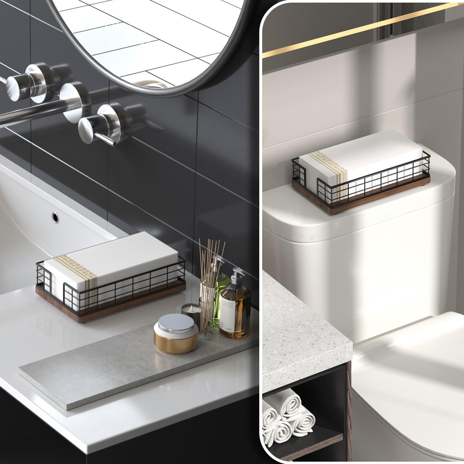 Quite Versatile: This guest towel holder hold paper towels in the guest bathroom for hand drying; hold paper bath towels for your powder room, easy to retrieve towel when needed; It can also be used as a lunch napkin holder, looking very nice on the dining table