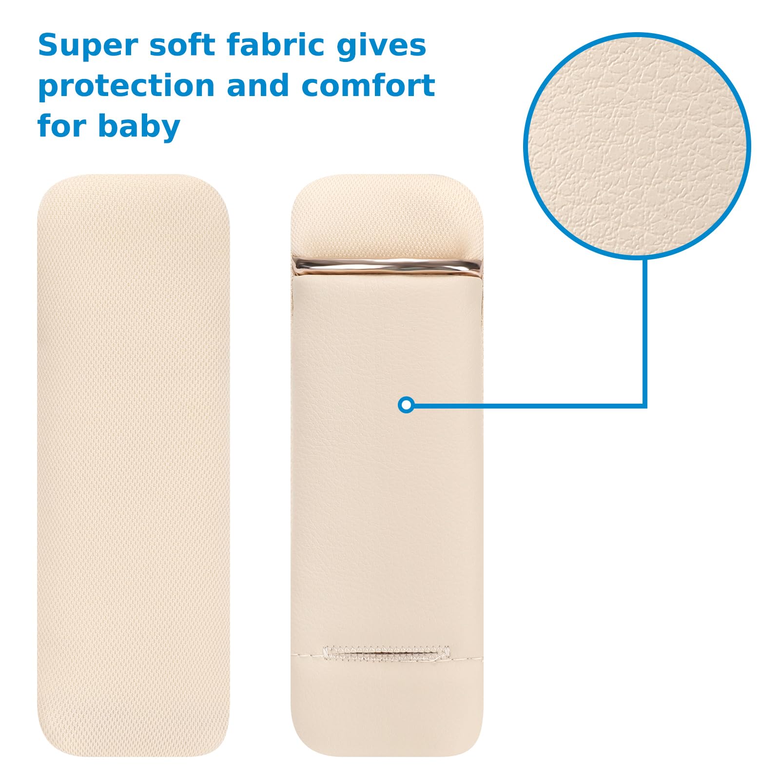 These baby car seat strap covers made of soft and comfortable pu leather, designed to protect baby and kids from uncomfortably rubbed by the seat belts/straps.