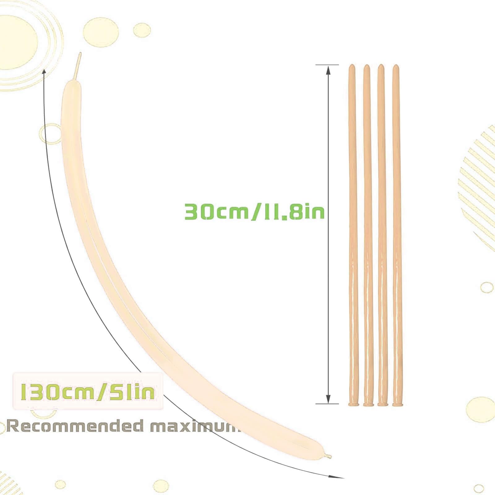 BALLOON ANIMAL BALLOONS: The length of the twisty balloon is 12.5 inches, and it can be inflated to 47-53 inches. It can be easily inflated with balloon pump or an electric pump.
