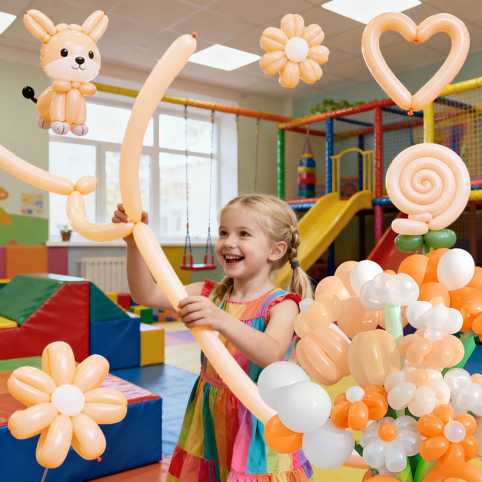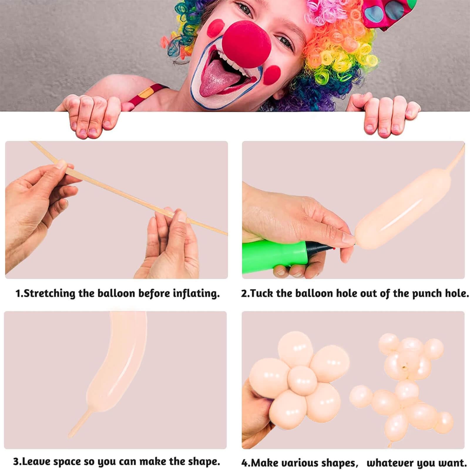 THE PACKAGE INCLUDES: 100 long balloons for balloon animals,can be shaped into any interesting sculpture or animal for professional balloon twisters and artists.