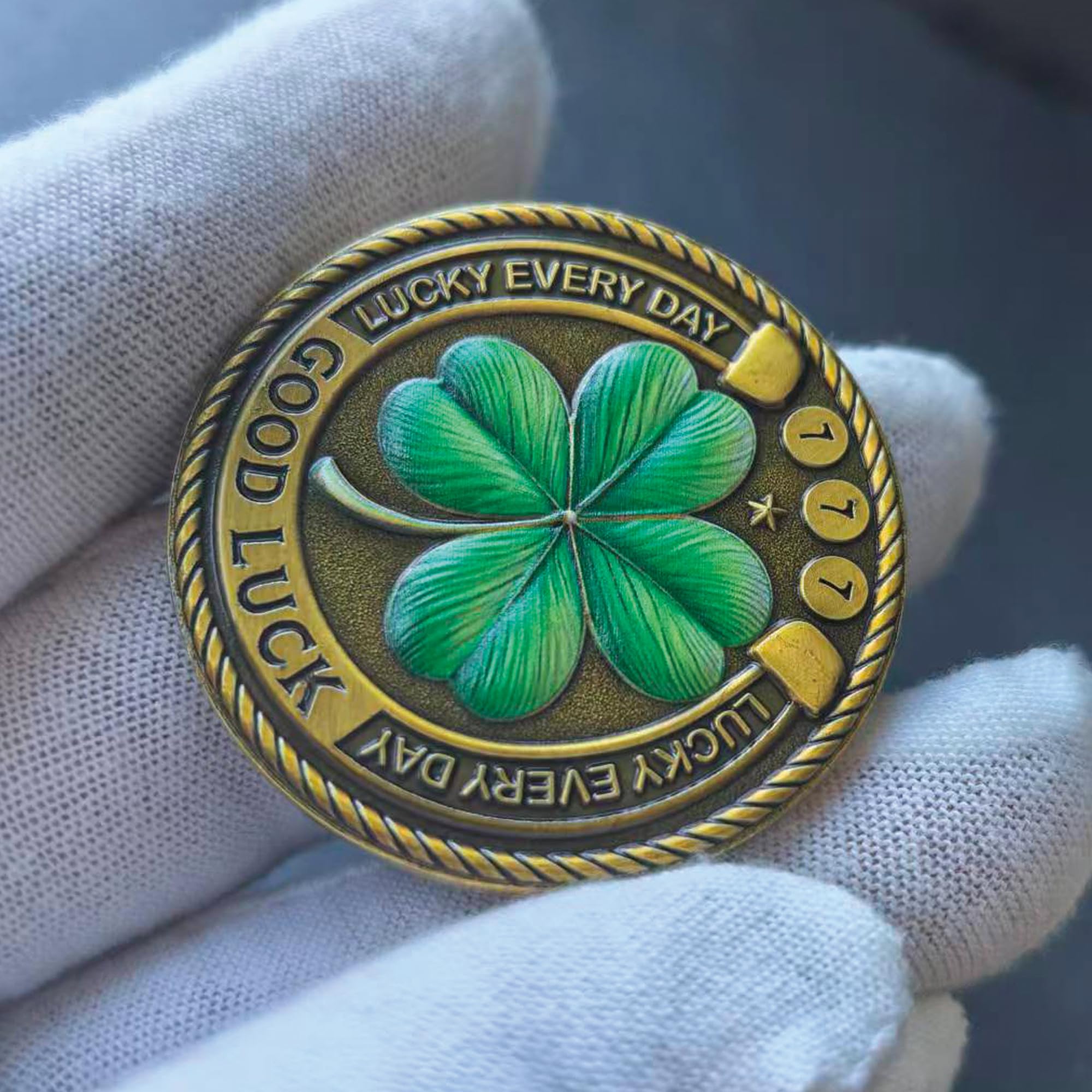 PREMIUM ANTIQUE BRASS CRAFTSMANSHIP - Expertly crafted from durable zinc alloy with intricate 3D relief details and elegant brass finish. The clover features vibrant green enamel accents. Measures 1.57 inches diameter, perfect pocket size. Includes clear protective case to preserve the coin's beautiful details.