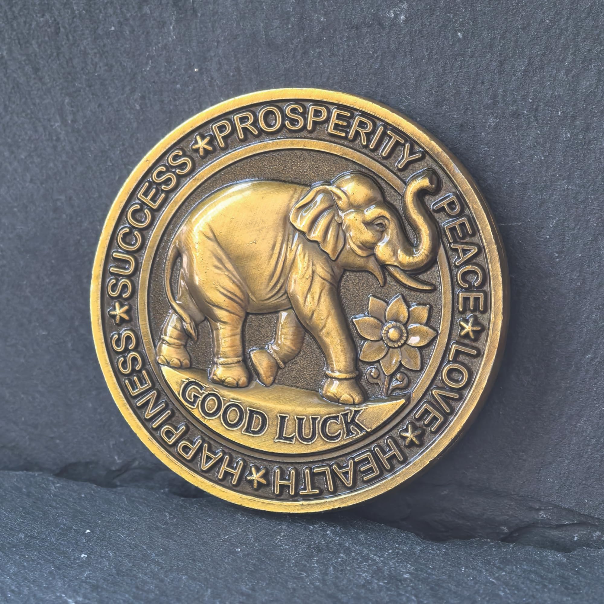 COMPLETE BLESSING INSCRIPTIONS - Back engraved with powerful words "Success★Prosperity★Peace★Joy★Health★Good Luck" encircling the elephant design. This comprehensive blessing combination makes it a meaningful talisman for career advancement, financial growth, wellness, and overall life happiness.
