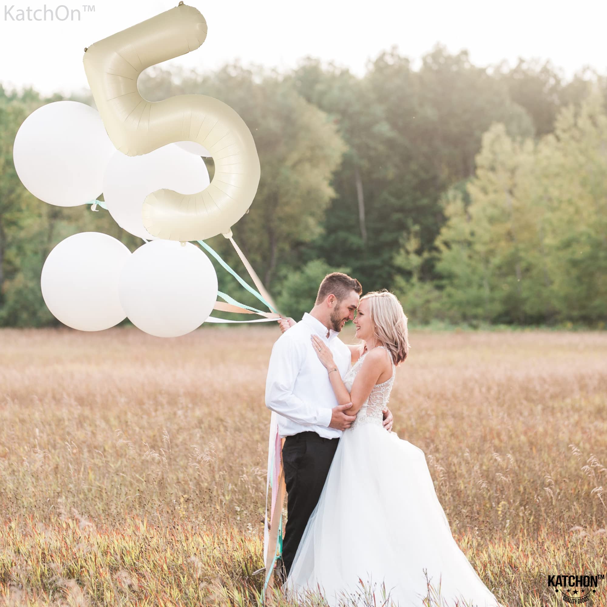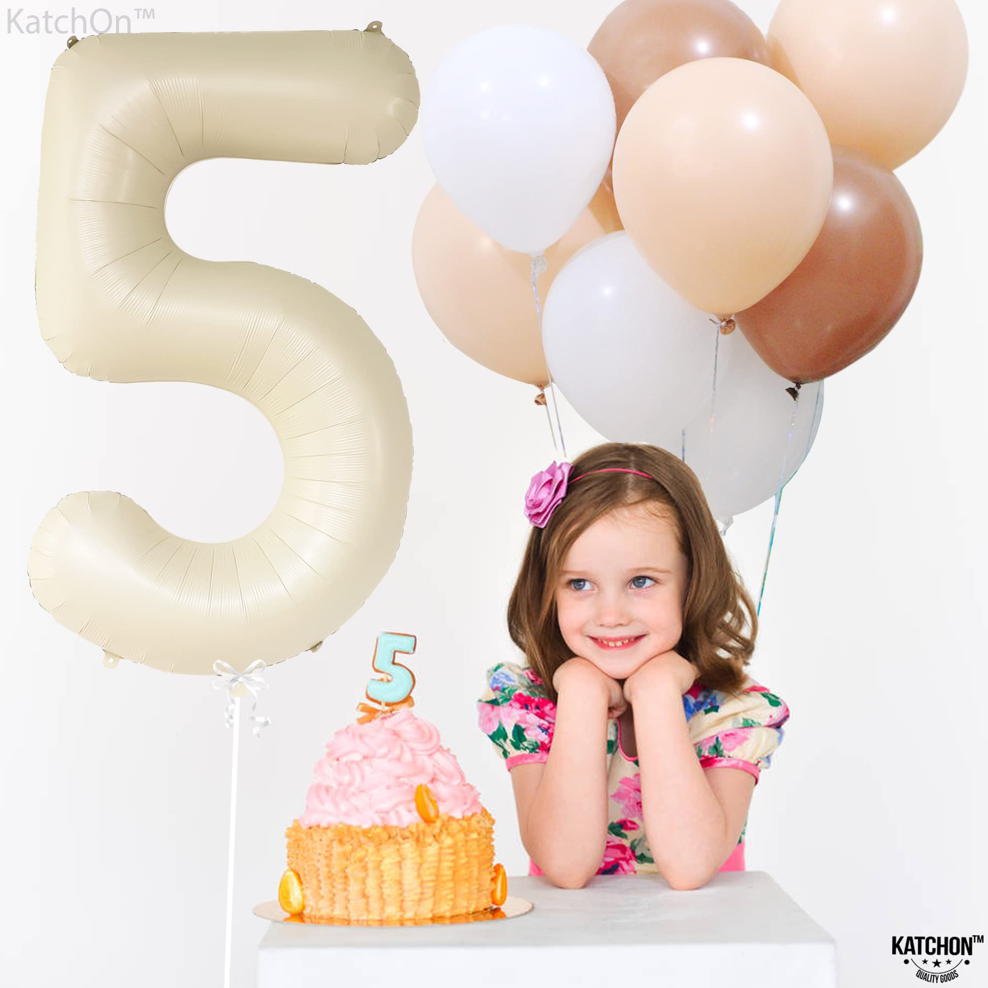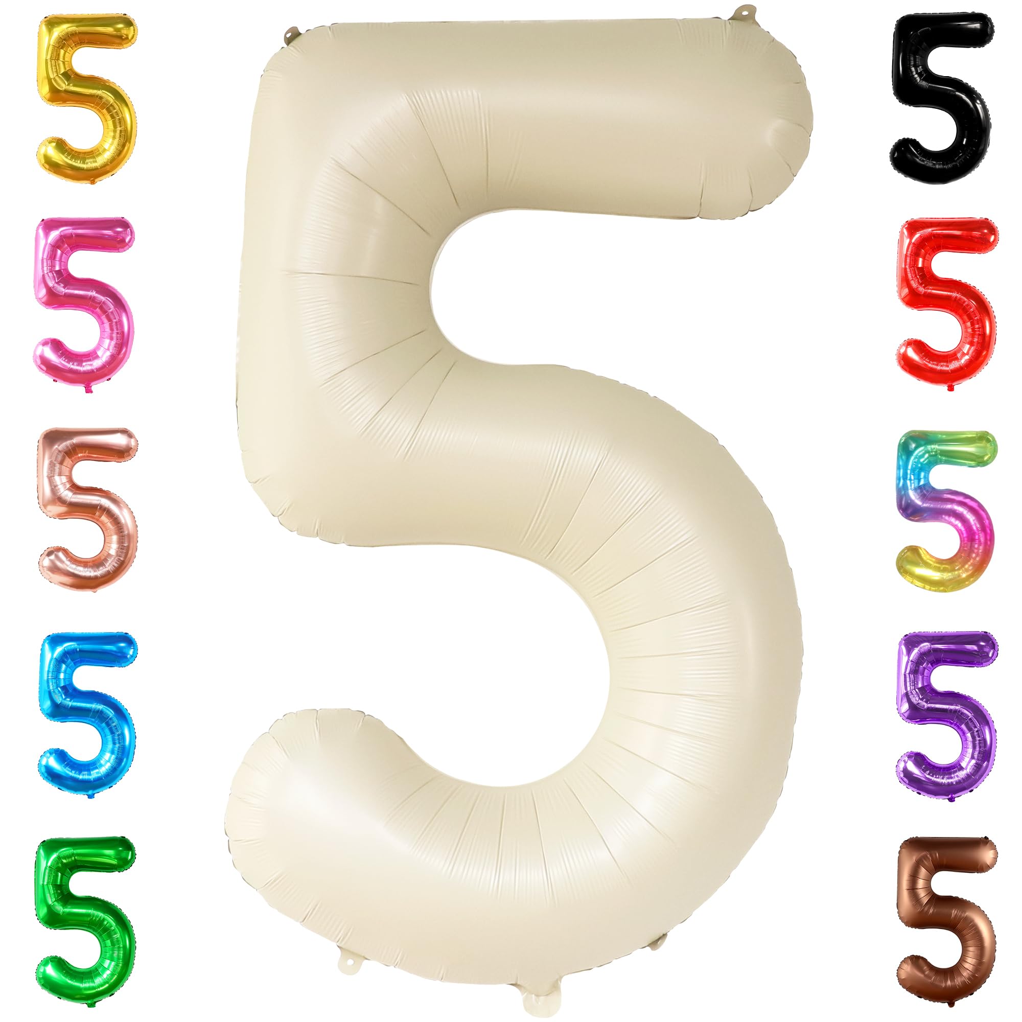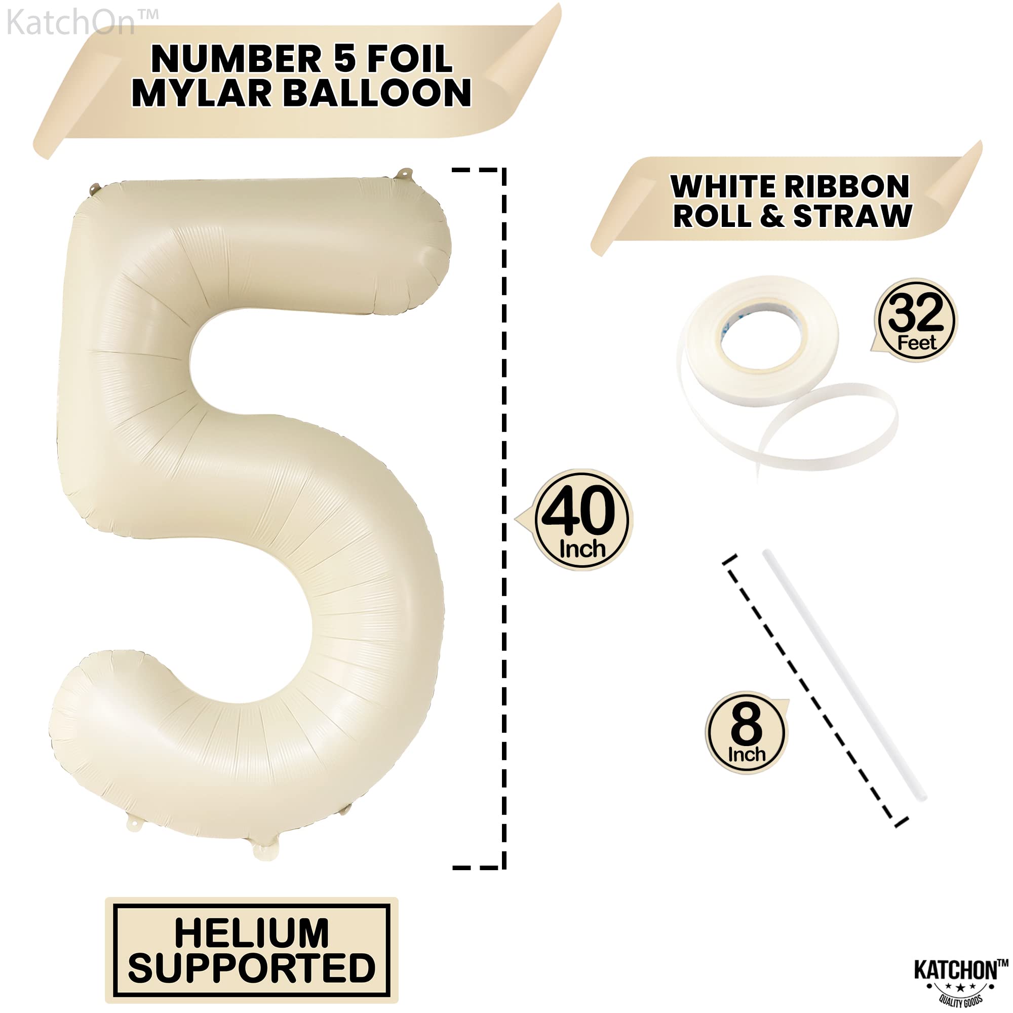 LARGE SIZE - 40 INCH | BEAUTIFUL CREAM WHITE BIRTHDAY BALLOONS - This Cream white number 5 balloon 40 inch is the party complement you shouldn’t miss. Add a great impact to your decoration with this Number 5 big balloon Mylar Comes with 1 White Ribbon and 1 Straw to Inflate balloons. Pair This 5 balloon number with other number balloons to create double digits for your birthday or anniversary decorations. Get this Number 5 white ceramic balloon to Your next celebration.
